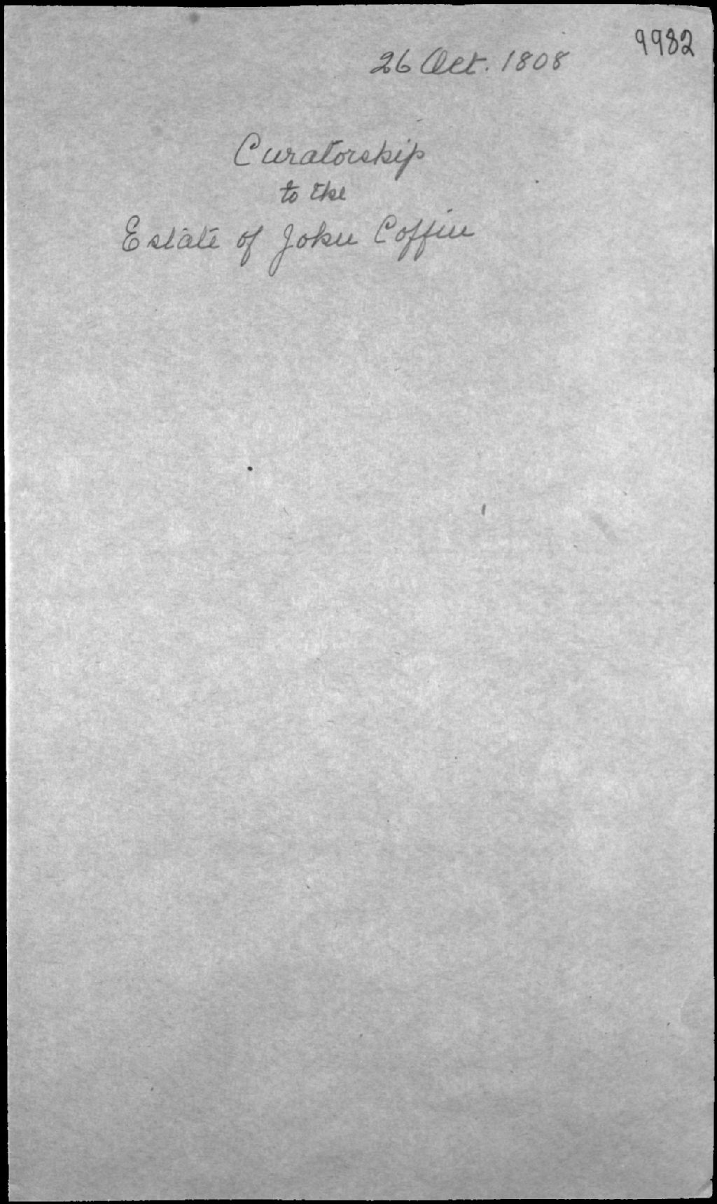 Curatelle pour la succession vacante de feu John Coffin, inspecteur des eaux et forêts de la province de Québec de Québec, et d'Isabella Coffin, 26 octobre 1808, Archives nationales à Québec, Fonds Cour supérieure. District judiciaire de Québec. Tutelles et curatelles, (03Q,CC301,S1,D9982).
