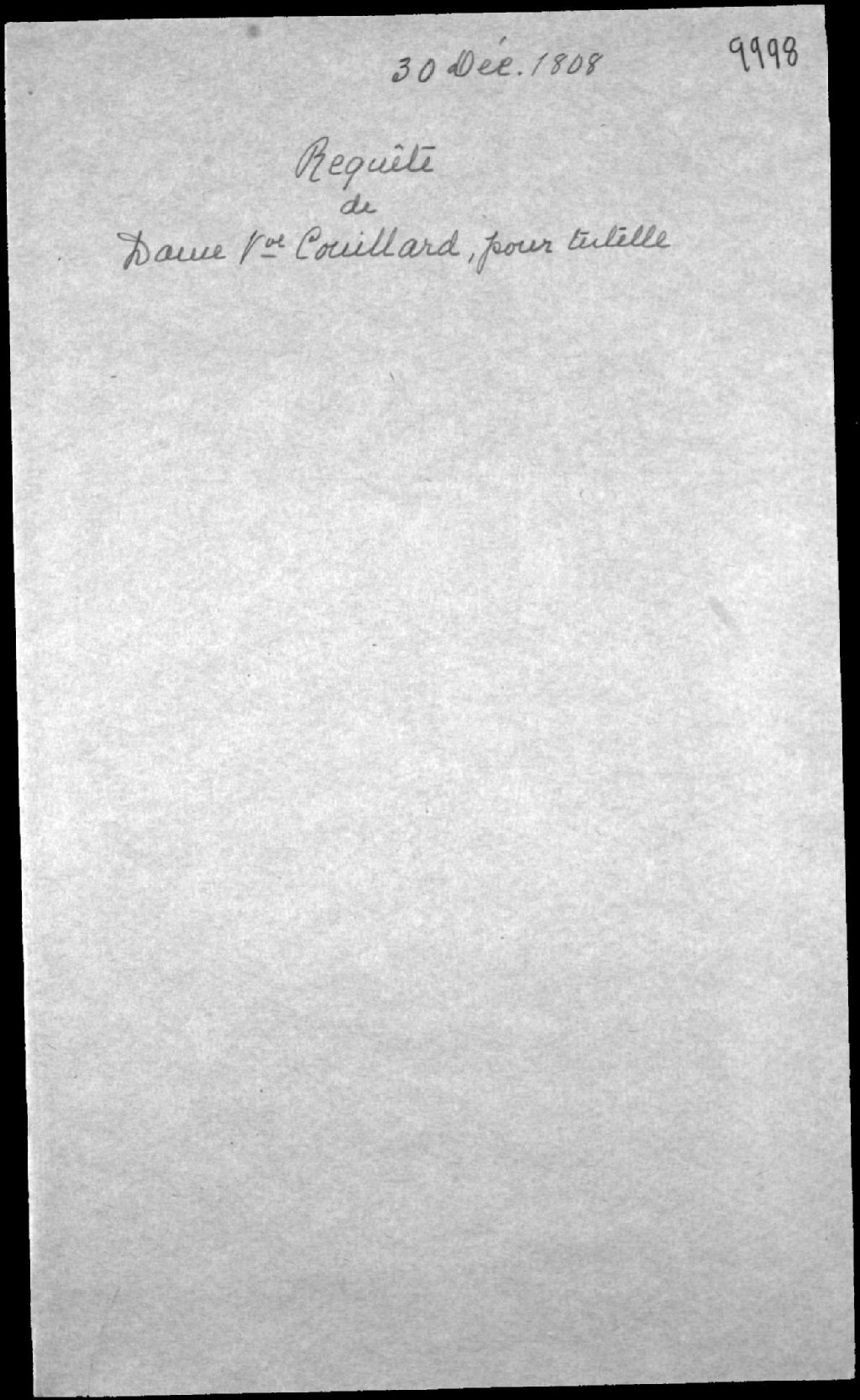 Requête pour tutelle aux enfants mineurs de feu Jean-Baptiste Couillard, seigneur primitif de la Rivière-du-Sud (paroisses de Saint-Thomas, Saint-Pierre et autres lieux demeurant actuellement en la Haute-Ville de Québec, rue Sainte-Famille, et de Marie-Angélique Chaussegros de Léry, 30 décembre 1808, Archives nationales à Québec, Fonds Cour supérieure. District judiciaire de Québec. Tutelles et curatelles, (03Q,CC301,S1,D9998).