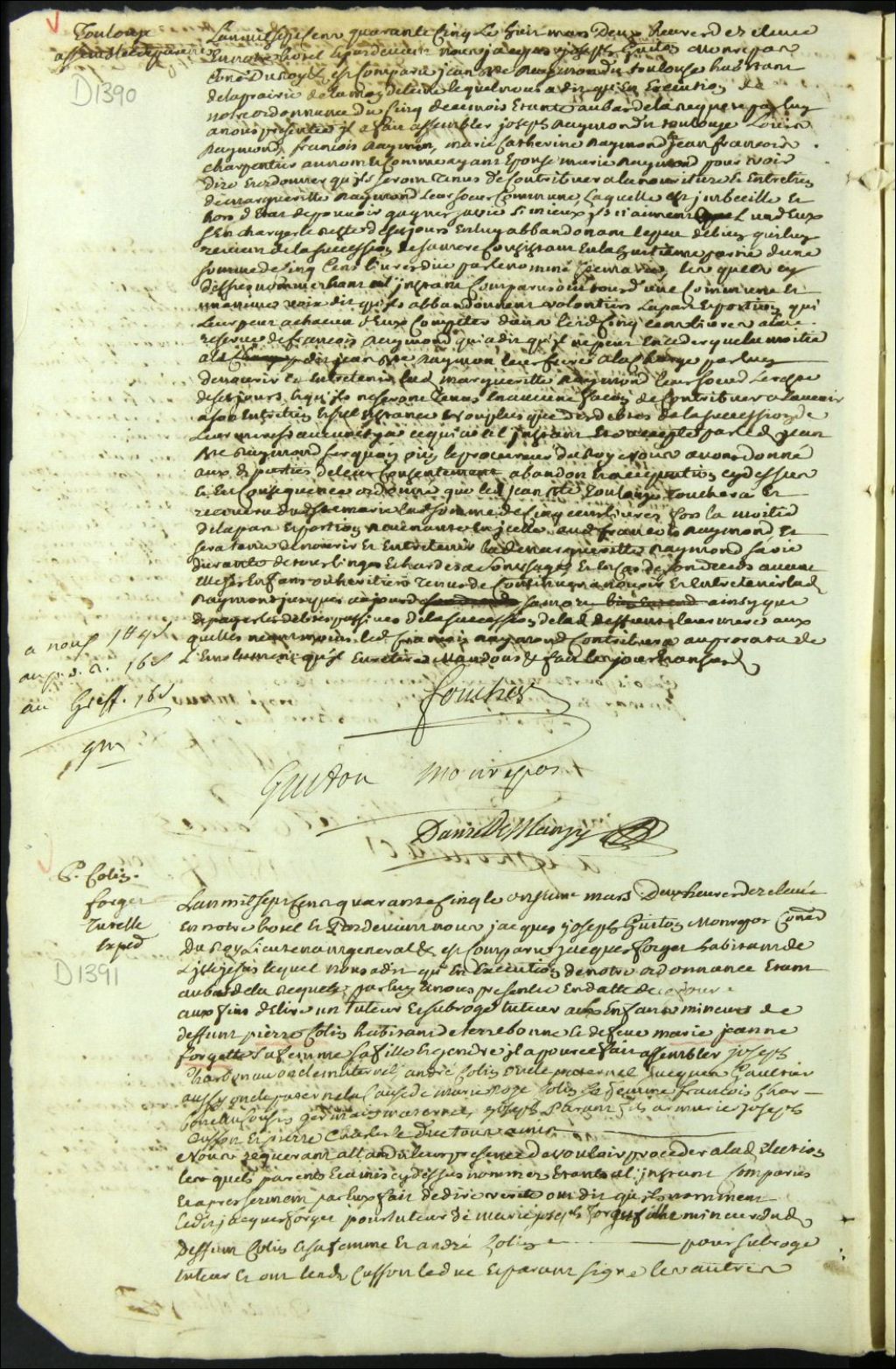 Tutelle des enfants mineurs des défunts Pierre Colin [Laliberté] et Marie Jeanne Forget [Dépatie], 11 mars 1745, Archives nationales à Montréal, Fonds Cour supérieure. District judiciaire de Montréal. Tutelles et curatelles, (06M,CC601,S1,SS1,D1391).