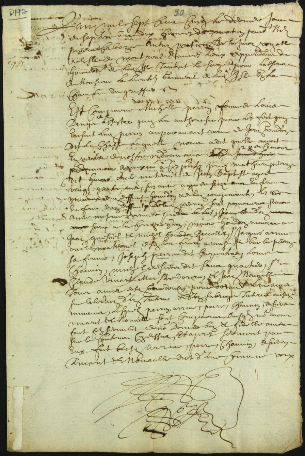 Tutelle des enfants mineurs de feu Jean Gourdon Lachasse et de Michelle Perrin, 30 septembre 1705, Archives nationales à Montréal, Fonds Cour supérieure. District judiciaire de Montréal. Tutelles et curatelles, (06M,CC601,S1,SS1,D192).