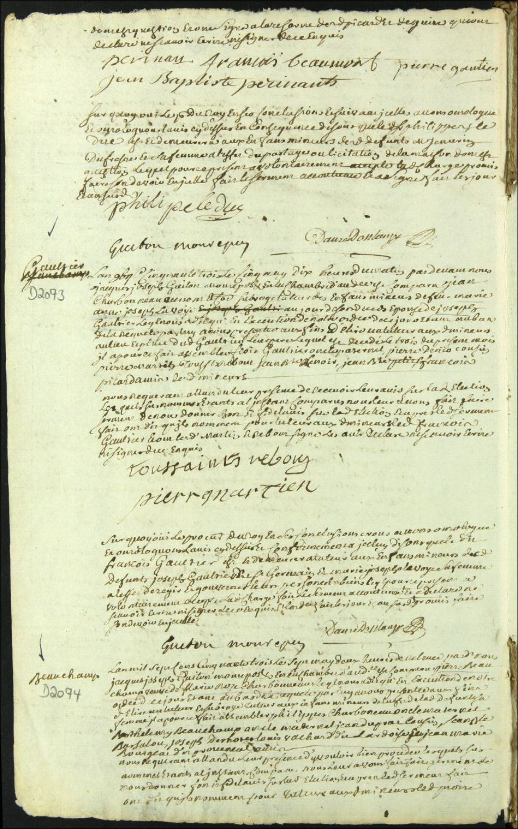Tutelle des enfants mineurs de feu Marie Rose Charbonneau [Marie Rose Huboult Longchamp ?] et de Pierre Beauchamp, 7 mai 1753, Archives nationales à Montréal, Fonds Cour supérieure. District judiciaire de Montréal. Tutelles et curatelles, (06M,CC601,S1,SS1,D2074).