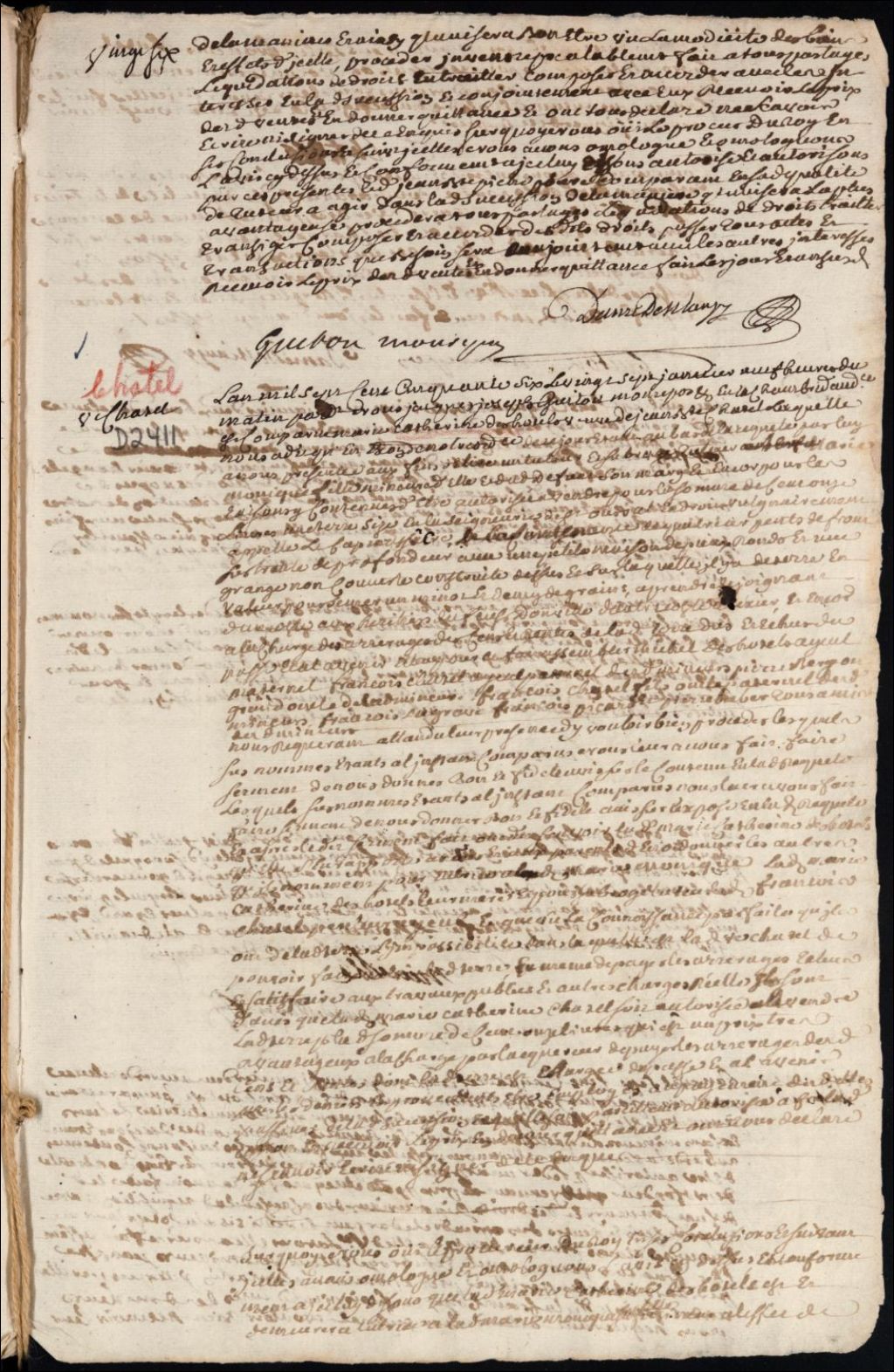Tutelle de l'enfant mineur de feu Jean Baptiste Chatel et de Marie Catherine Desautels [Lapointe] - Élection et administration tutélaires, 27 janvier 1756, Archives nationales à Montréal, Fonds Cour supérieure. District judiciaire de Montréal. Tutelles et curatelles, (06M,CC601,S1,SS1,D2411).