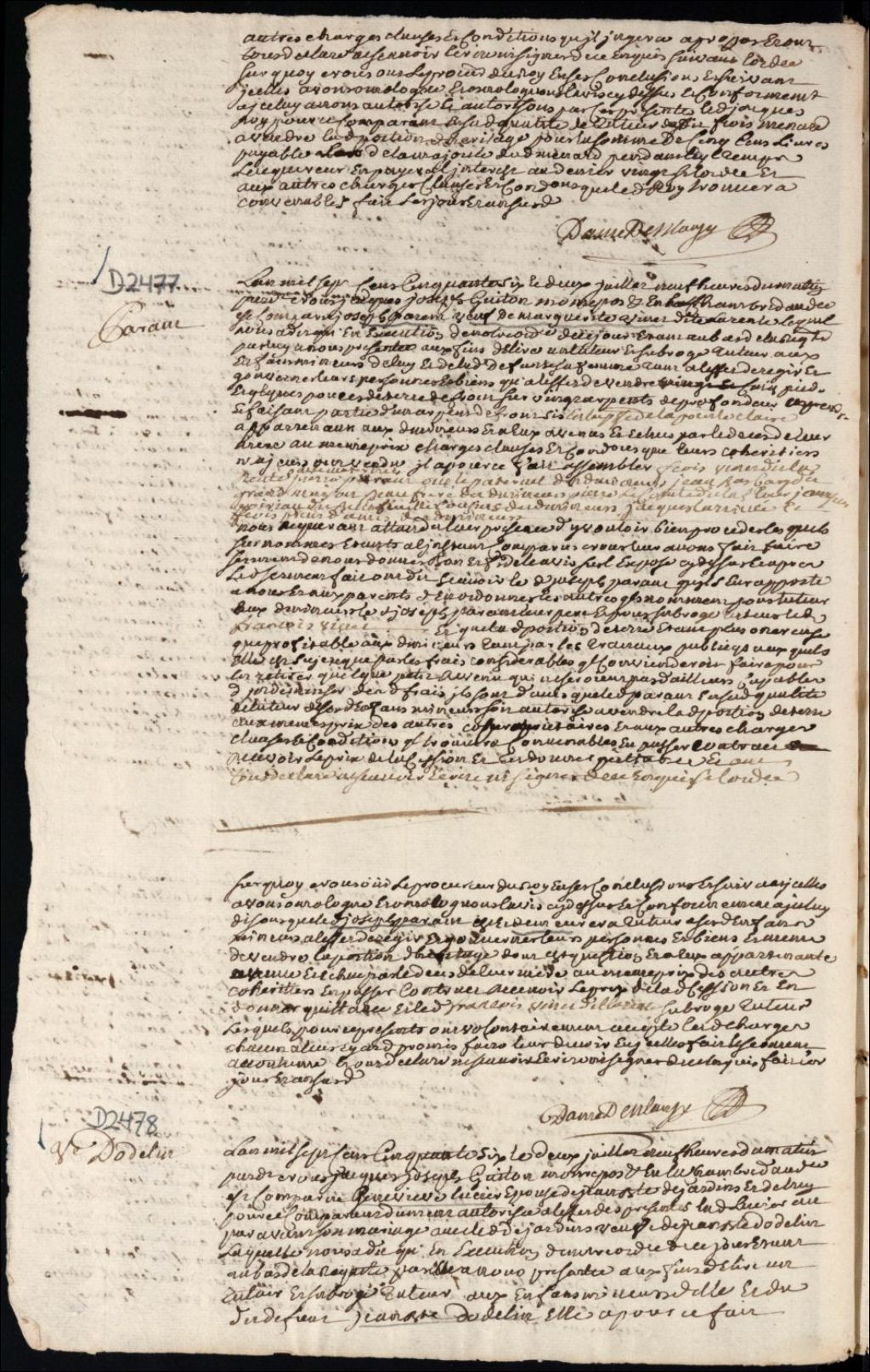 Tutelle des enfants mineurs de feu Jean Baptiste Daudelin et de Geneviève Lussier, 2 juillet 1756, Archives nationales à Montréal, Fonds Cour supérieure. District judiciaire de Montréal. Tutelles et curatelles, (06M,CC601,S1,SS1,D2478).