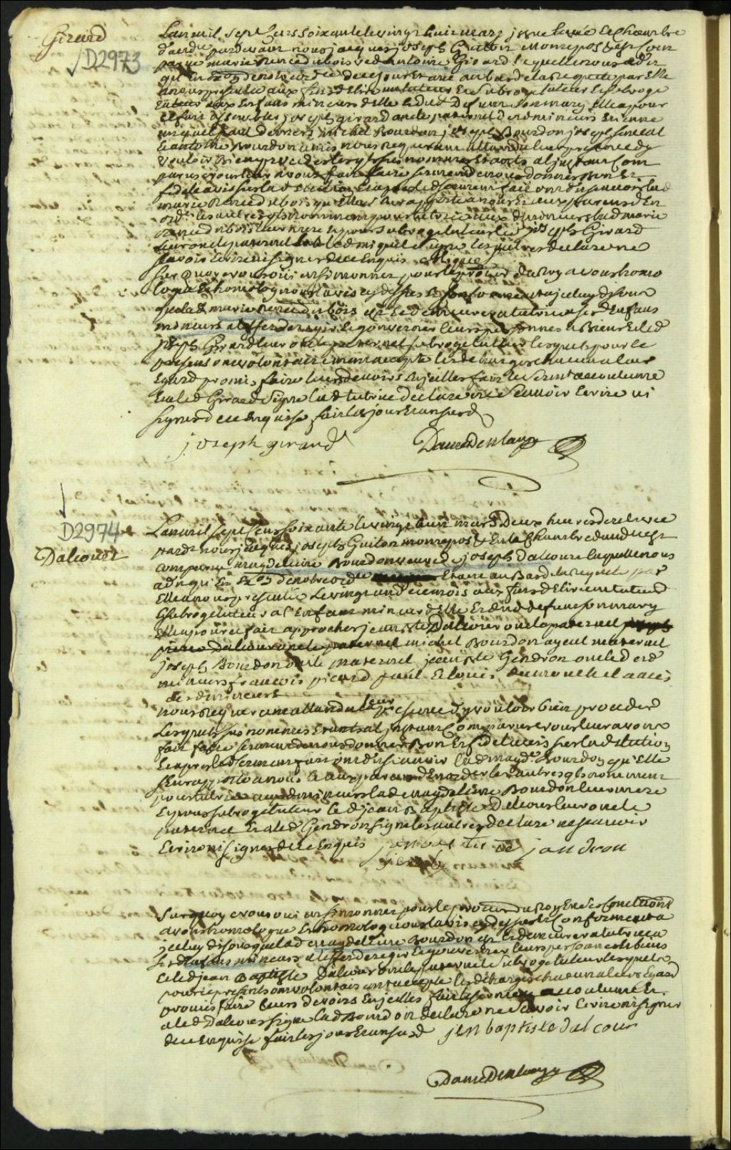 Tutelle des enfants mineurs de feu Antoine Girard et de Marie Renée Dubois, 28 mars 1760, Archives nationales à Montréal, Fonds Cour supérieure. District judiciaire de Montréal. Tutelles et curatelles, (06M,CC601,S1,SS1,D2973).