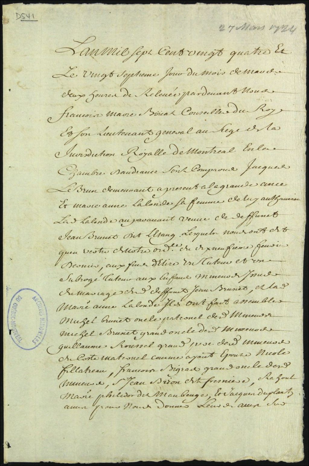 - Tutelle des enfants mineurs de feu Jean Brunet Létang et de Marie Anne Lalande [Marie Jeanne Lalande]