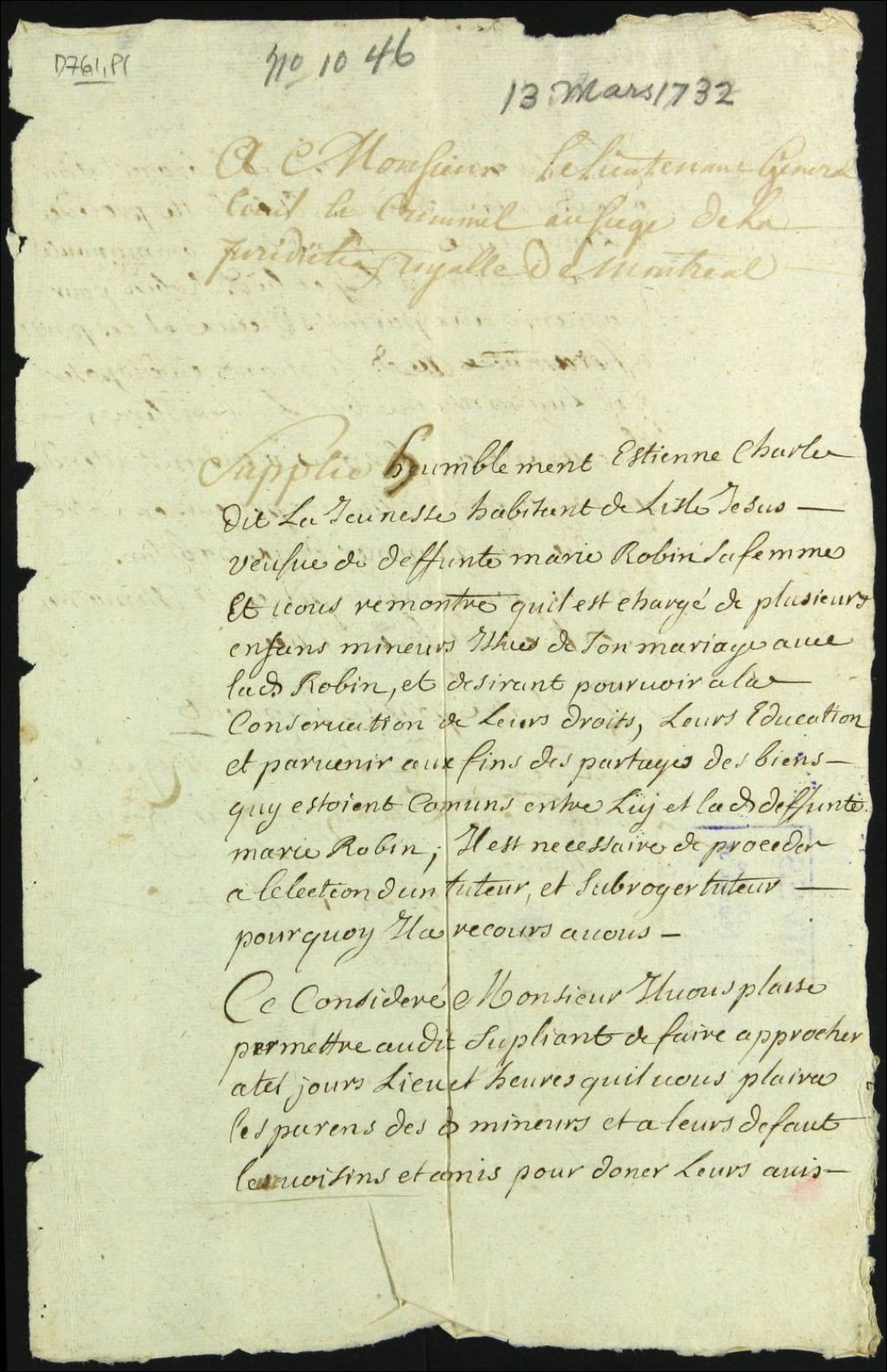- Tutelle des enfants mineurs de feu Marie Josèphe Robin et de Étienne Charles Lajeunesse