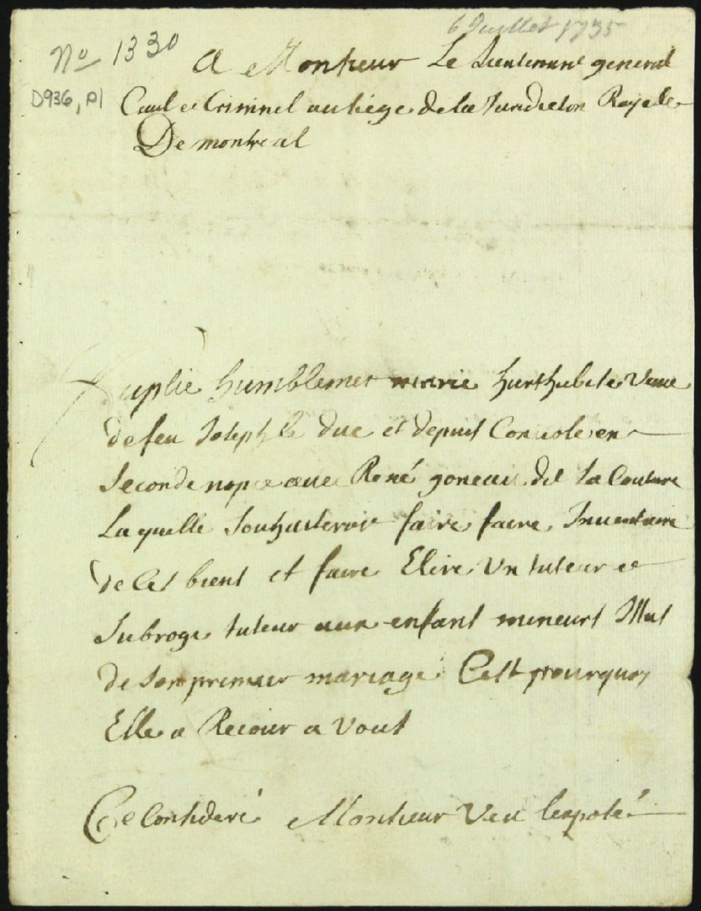 Tutelle des enfants mineurs de feu Joseph Leduc et de Marie Anne Hurtubise