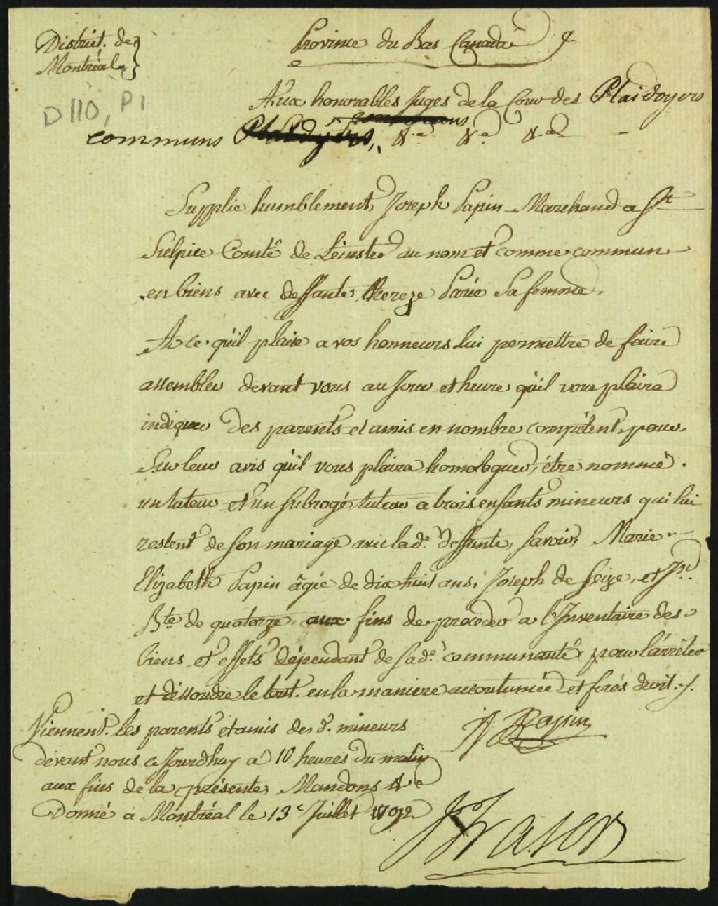 Tutelle des enfants mineurs de feu Thérèse Paré et de Joseph Papin