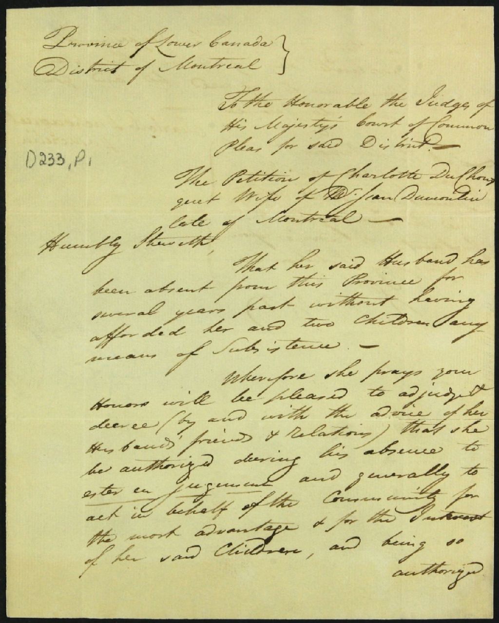 Autorisation pour Charlotte Dechouquet en l'absence de son époux Jean Dumoulin