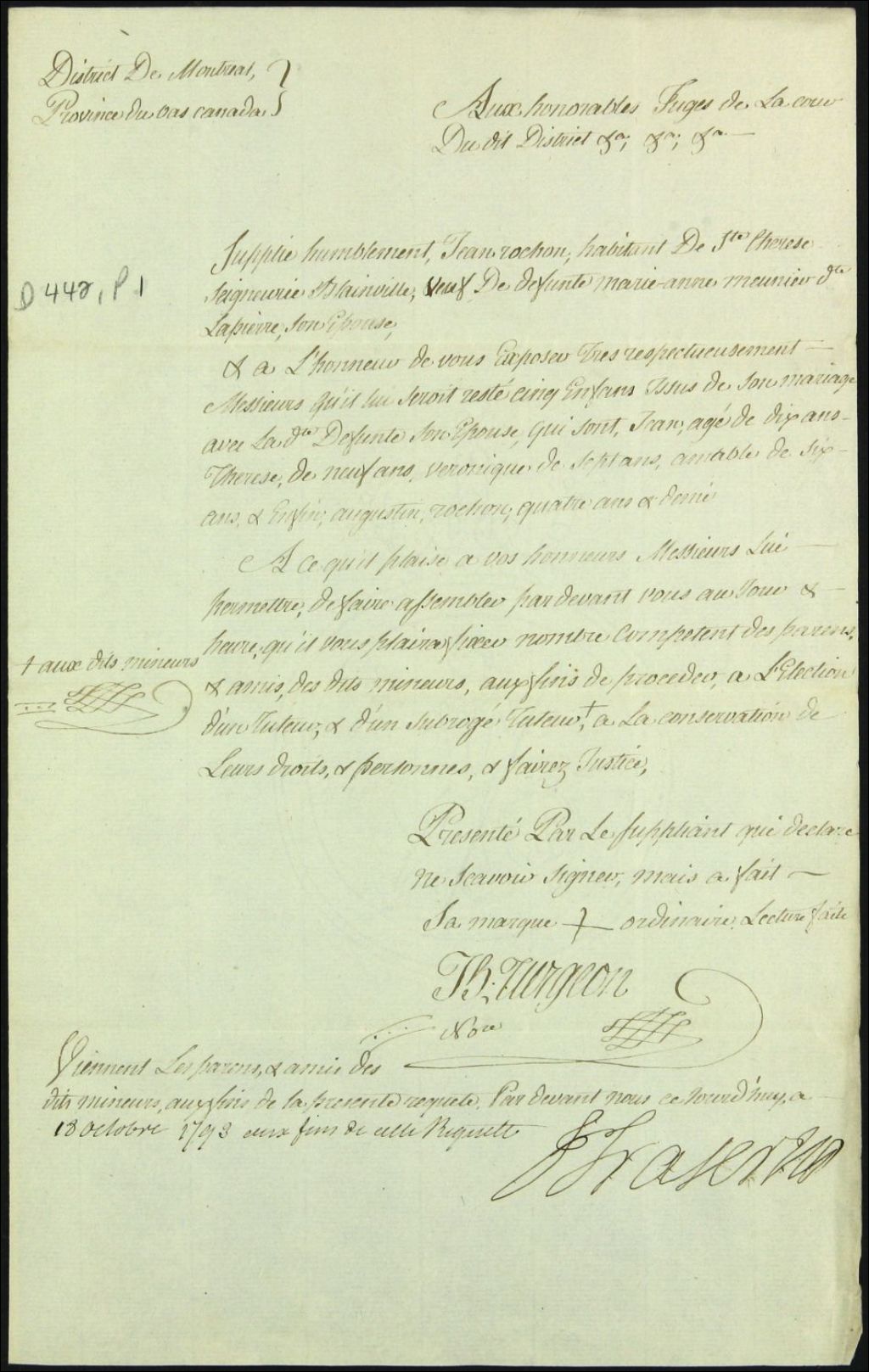 - Tutelle des enfants mineurs de feu Marie Anne Meunier Lapierre et de Jean Rochon