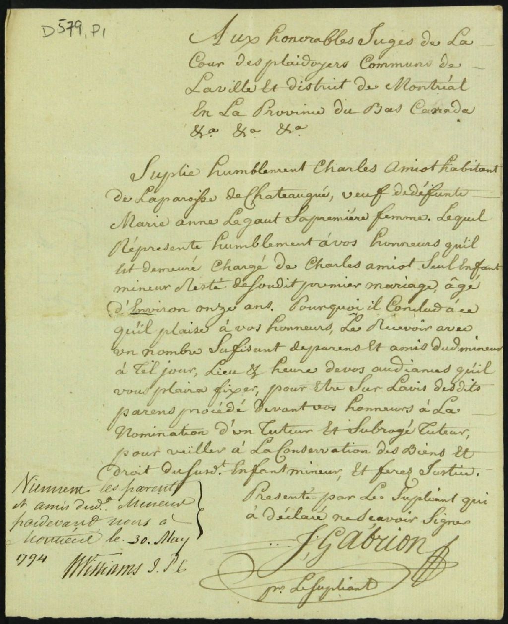 Tutelle de l'enfant mineur de feu Marie Anne Legault et de Charles Amiot