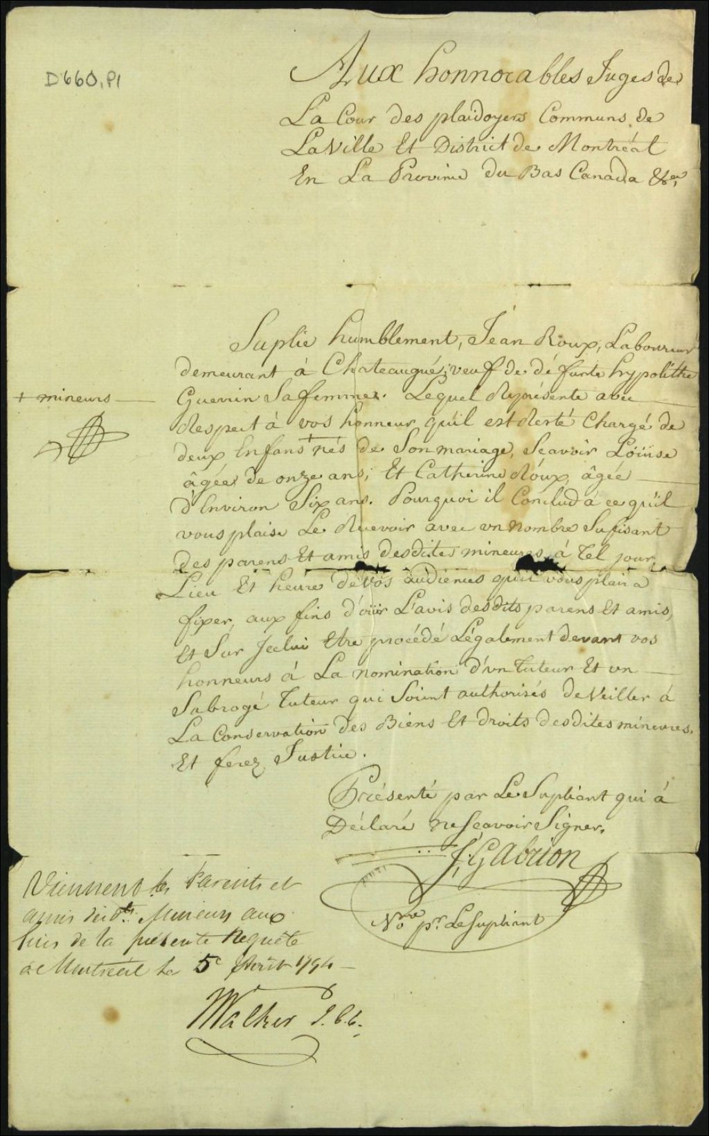 Tutelle des enfants mineurs de feu Hippolyte Guérin et de Jean [Le]Roux