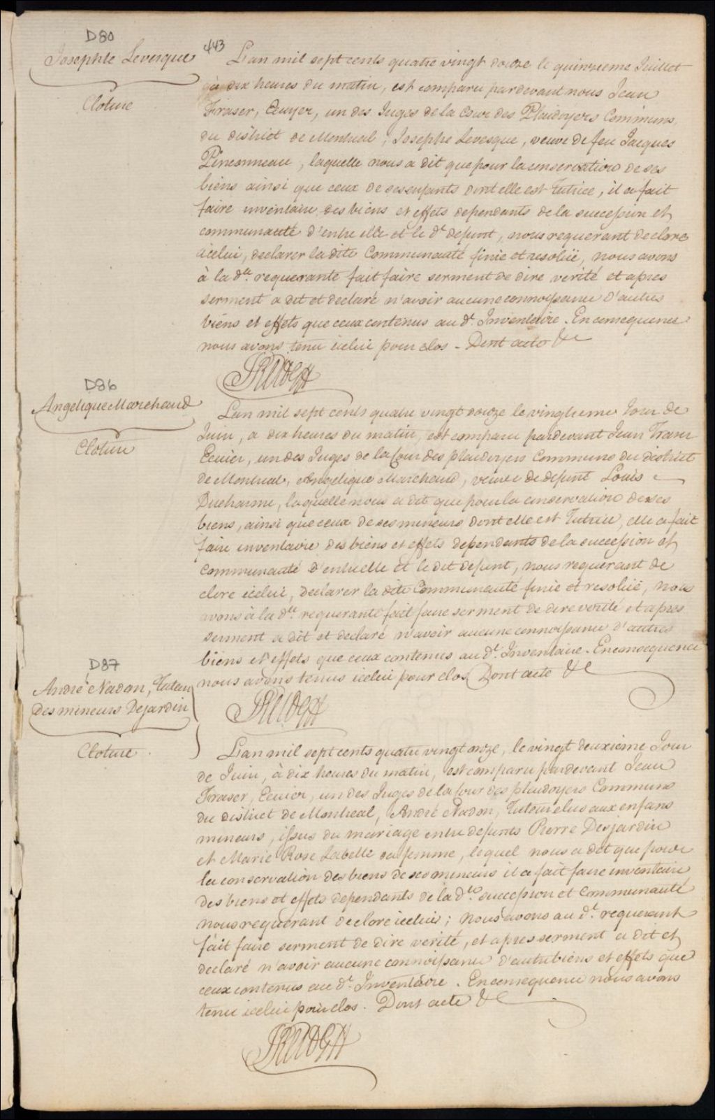 Tutelle des enfants mineurs de feu Jacques Pinsonneault et de Marie Josèphe Lévesque - Administration tutélaire