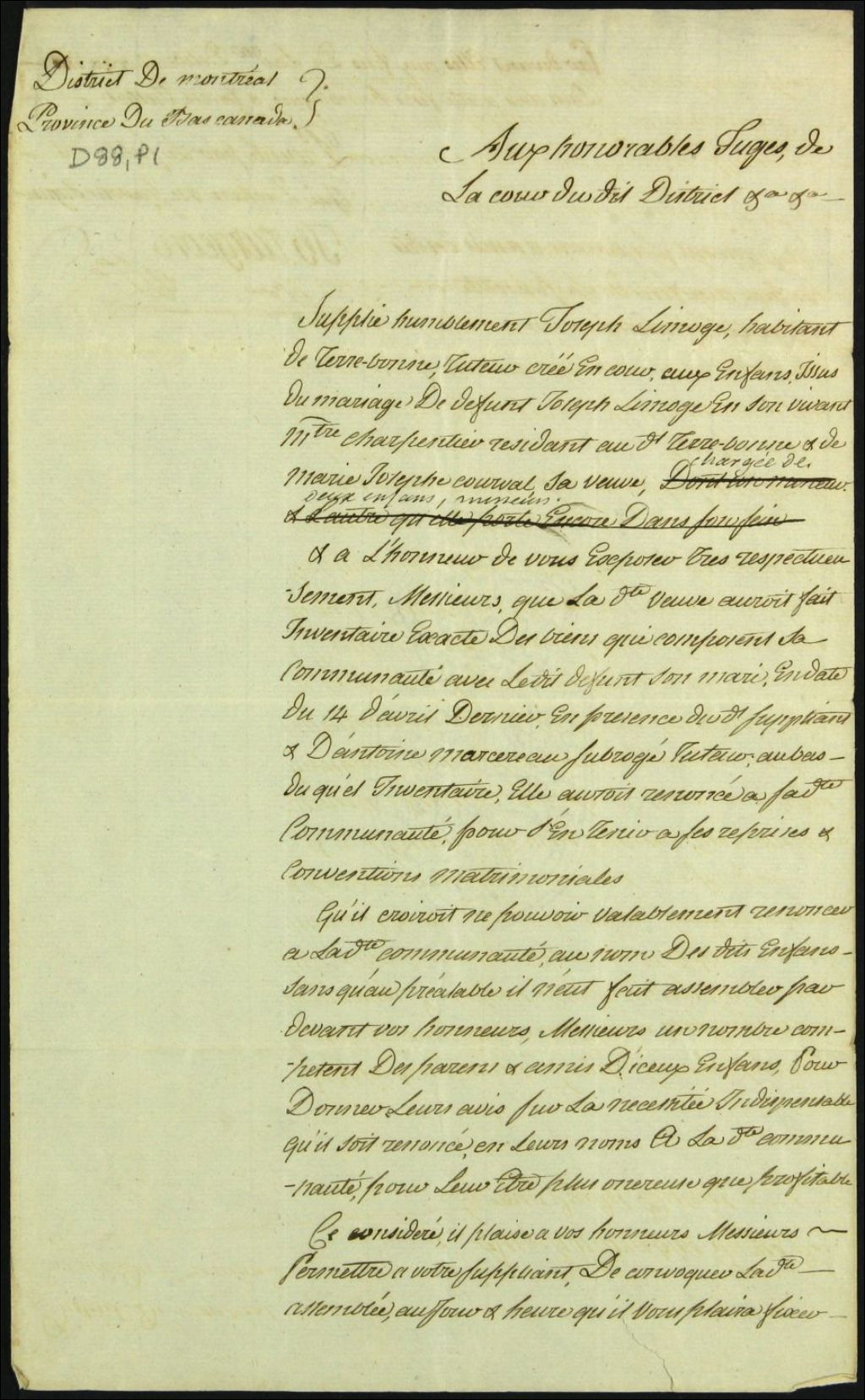 - Tutelle des enfants mineurs de feu Joseph Limoges et de Marie Josèphe Courval - Administration tutélaire