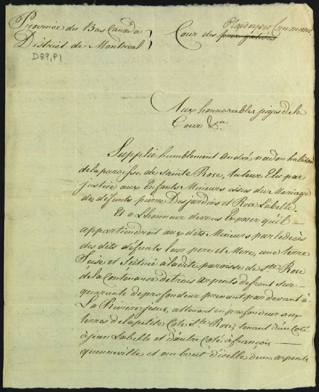 Tutelle des enfants mineurs des défunts Pierre Desjardins et Rose Labelle - Administration tutélaire, 22 juin 1792, Archives nationales à Montréal, Fonds Cour supérieure. District judiciaire de Montréal. Tutelles et curatelles, (06M,CC601,S1,SS2,D89).