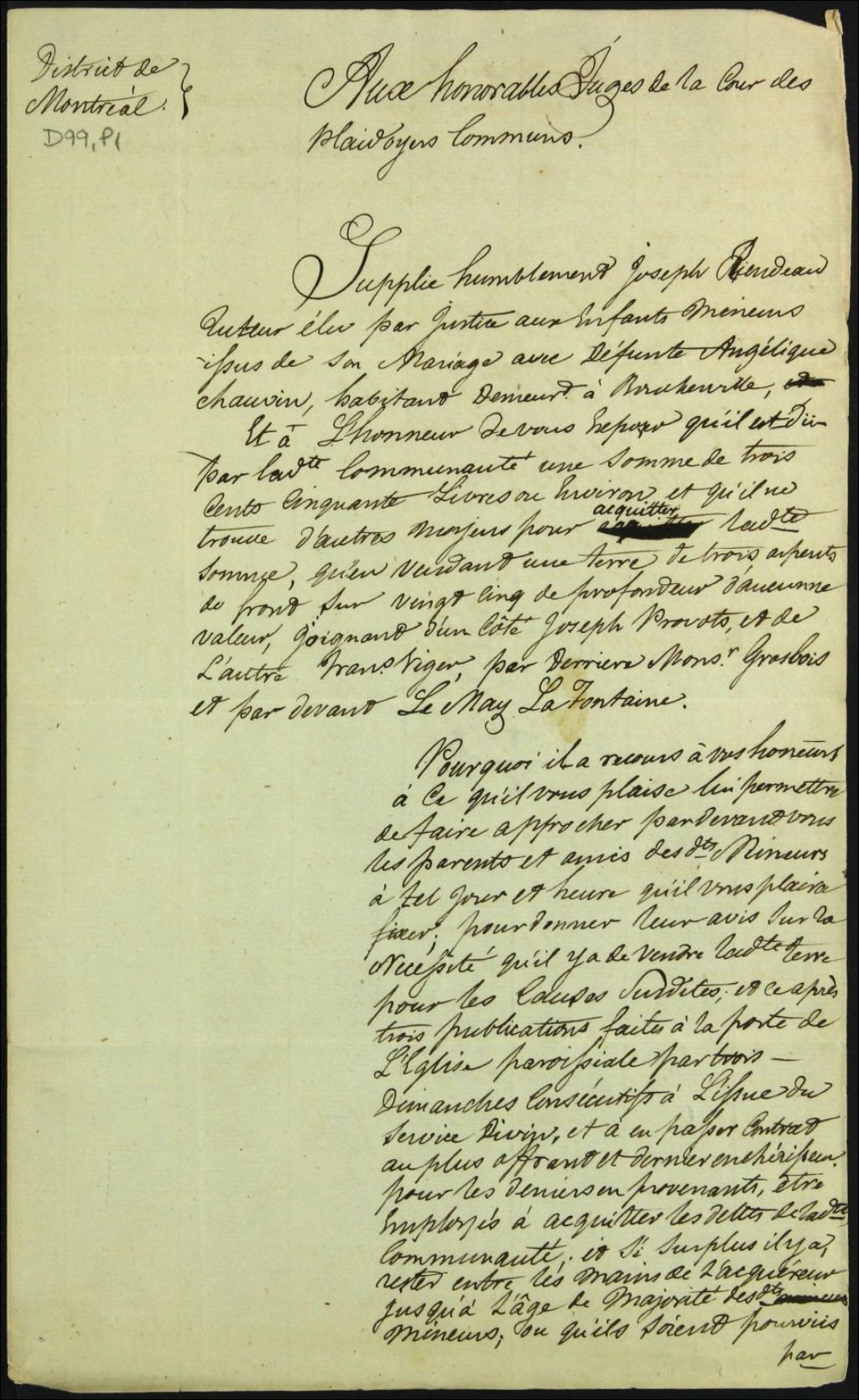 Tutelle des enfants mineurs de feu Angélique Chauvin et de Joseph Riendeau - Administration tutélaire, 6 juillet 1792, Archives nationales à Montréal, Fonds Cour supérieure. District judiciaire de Montréal. Tutelles et curatelles, (06M,CC601,S1,SS2,D99).