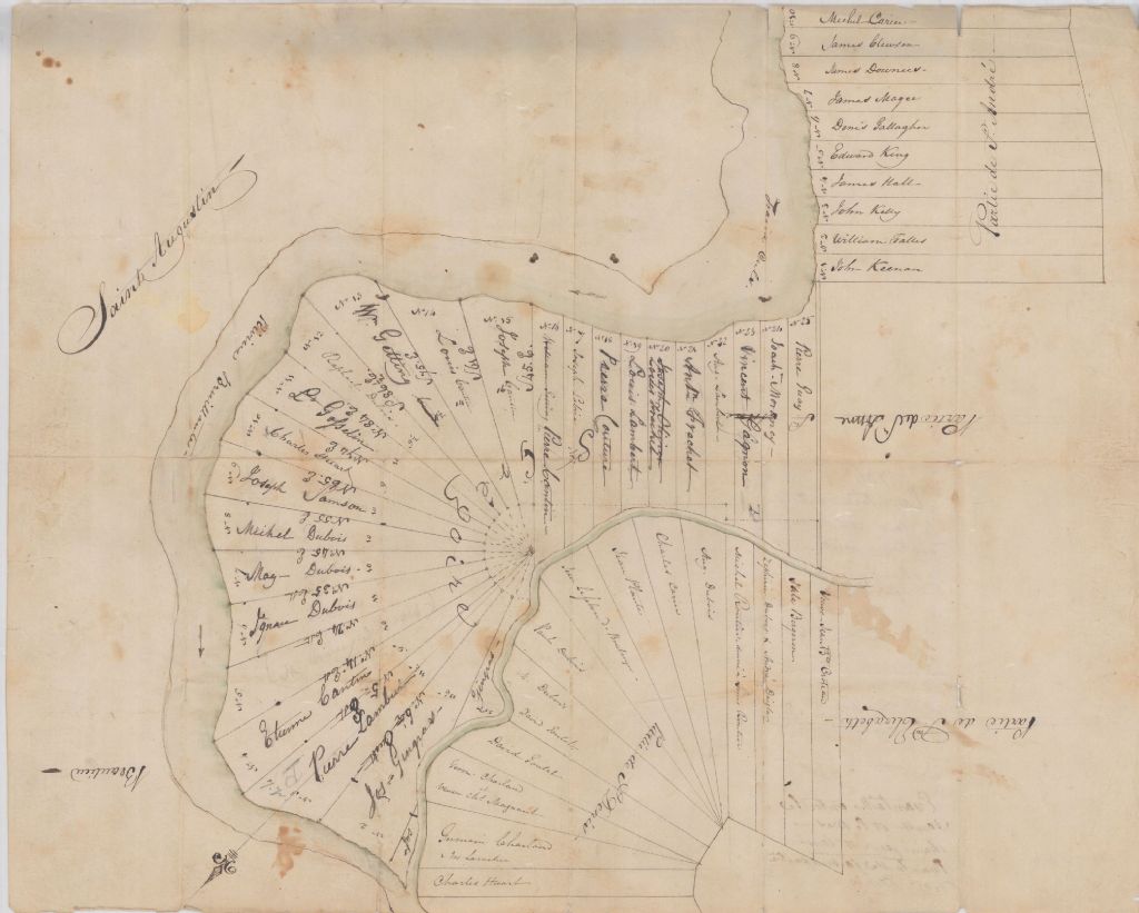 Plan de plusieurs lots faisant partie des concessions Saint-Denis et Saint-Grégoire dans la seigneurie de Lauzon