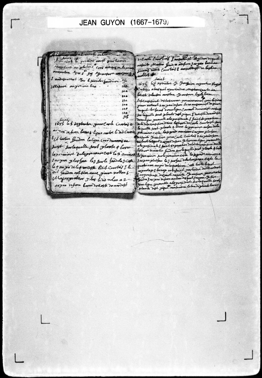 Procès-verbal de chaînage de terres situées au platon Sainte-Croix au-dessus de la pointe en montant vers Sainte-Foy puis en descendant vers le Sault de la Chaudière dans la [seigneurie de Sainte-Croix]. La présente pièce concerne directement: les Mères Ursulines (arpenteur Jean Guyon), 1er août 1675, Archives nationales à Québec, Fonds Cour supérieure. District judiciaire de Québec. Greffes d'arpenteurs, (03Q,CA301,S21,P36).