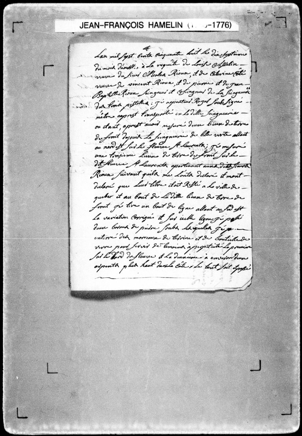 - Procès-verbal de chaînage, ligne et bornes de la [seigneurie Rioux] à partir des bornes de la seigneurie de l'Île-Verte, puis de la seigneurie des Trois-Pistoles, sur le fleuve Saint-Laurent.