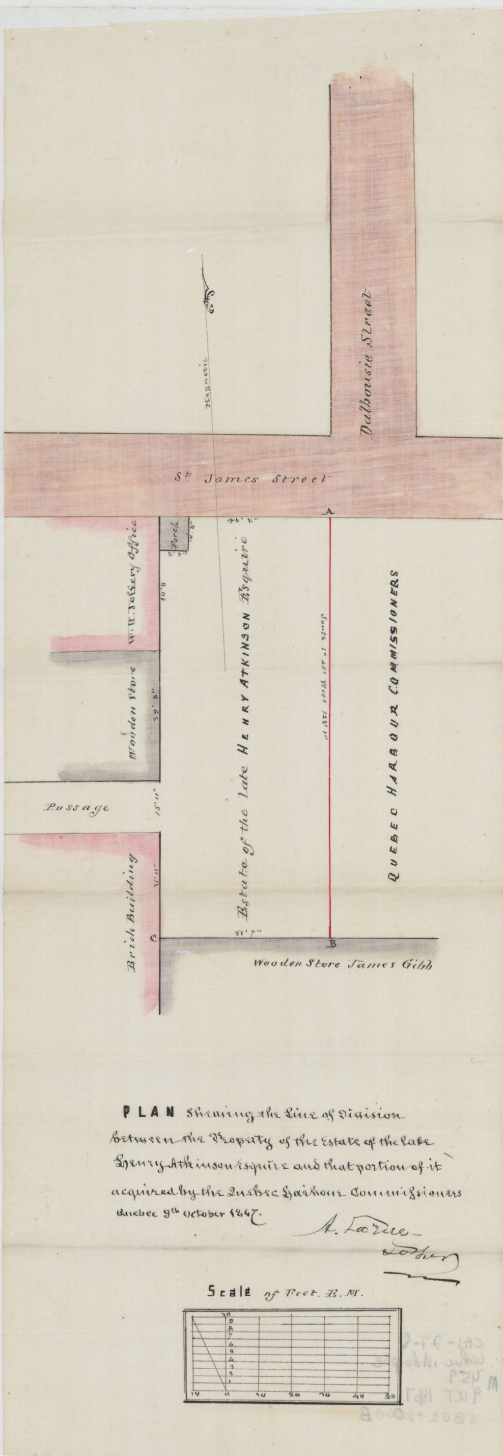 Plan showing the line of division between the property of the estate of the late Henry Atkinson and that portion of it acquired by the Quebec Harbour Commissioners