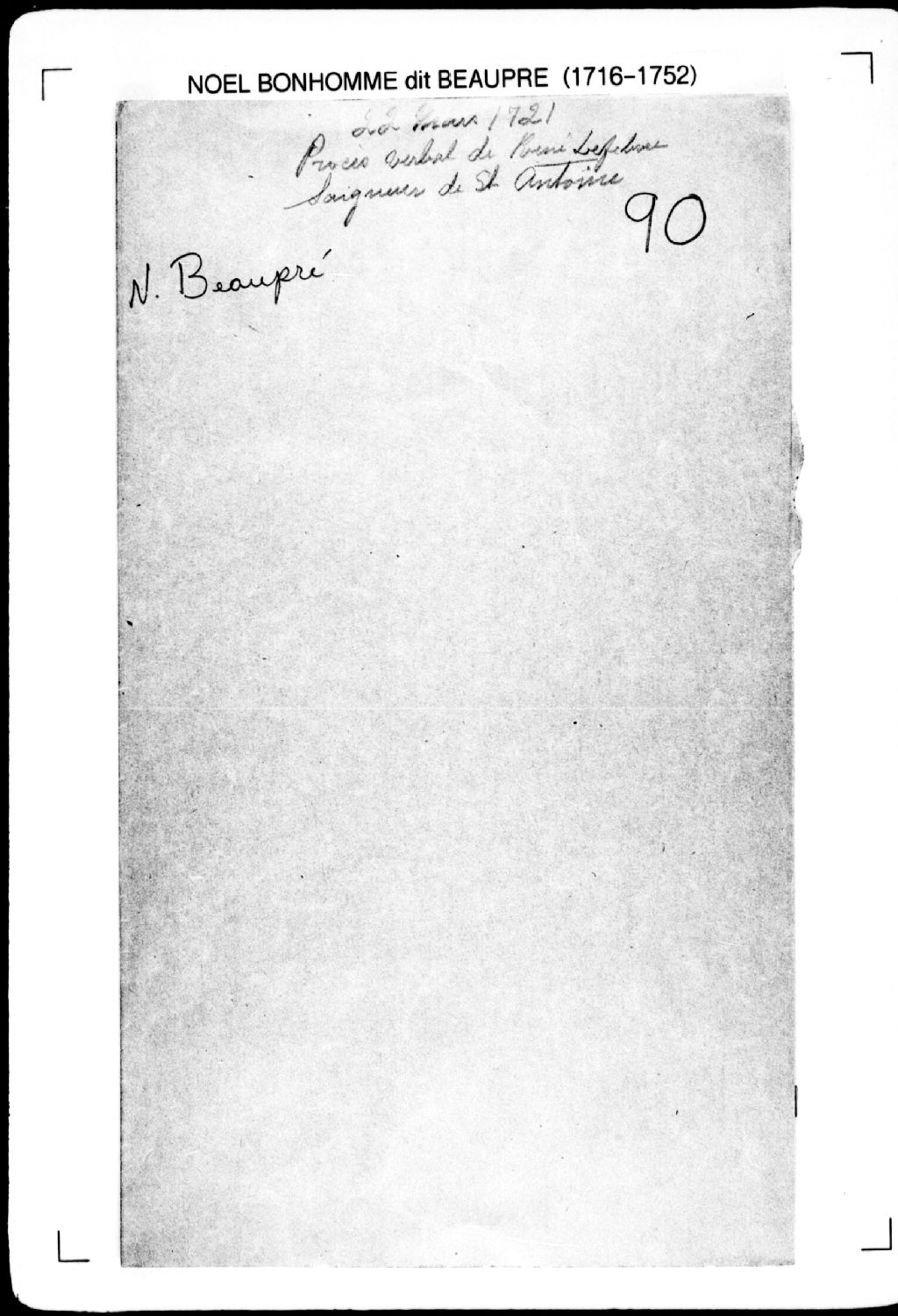 - La pièce se compose du procès-verbal de chaînage, lignes et bornes de douze terres situées dans la seigneurie de la Baie-Saint-Antoine. Elle concerne directement: Pierre Derochez (Desrochers); Joseph Decauteau (Descoteaux); Jean Arelle (père) (Harel), père de Pierre Harel; Pierre Arelle (fils) (Harel), fils de Jean Harel; Louis Lefebvre, sieur Desile (Desilets); Jean Manceau (Manseau); Jacques Decauteau (Descoteaux); Jean Decauteau (Descoteaux); une terre non concédée; Gabriel Derochée (Desrochers); Louis Manceau (Manseau); le sieur Beaucage (Bocage). La présente pièce touche indirectement un propriétaire voisin: Claude Brou (Brault).