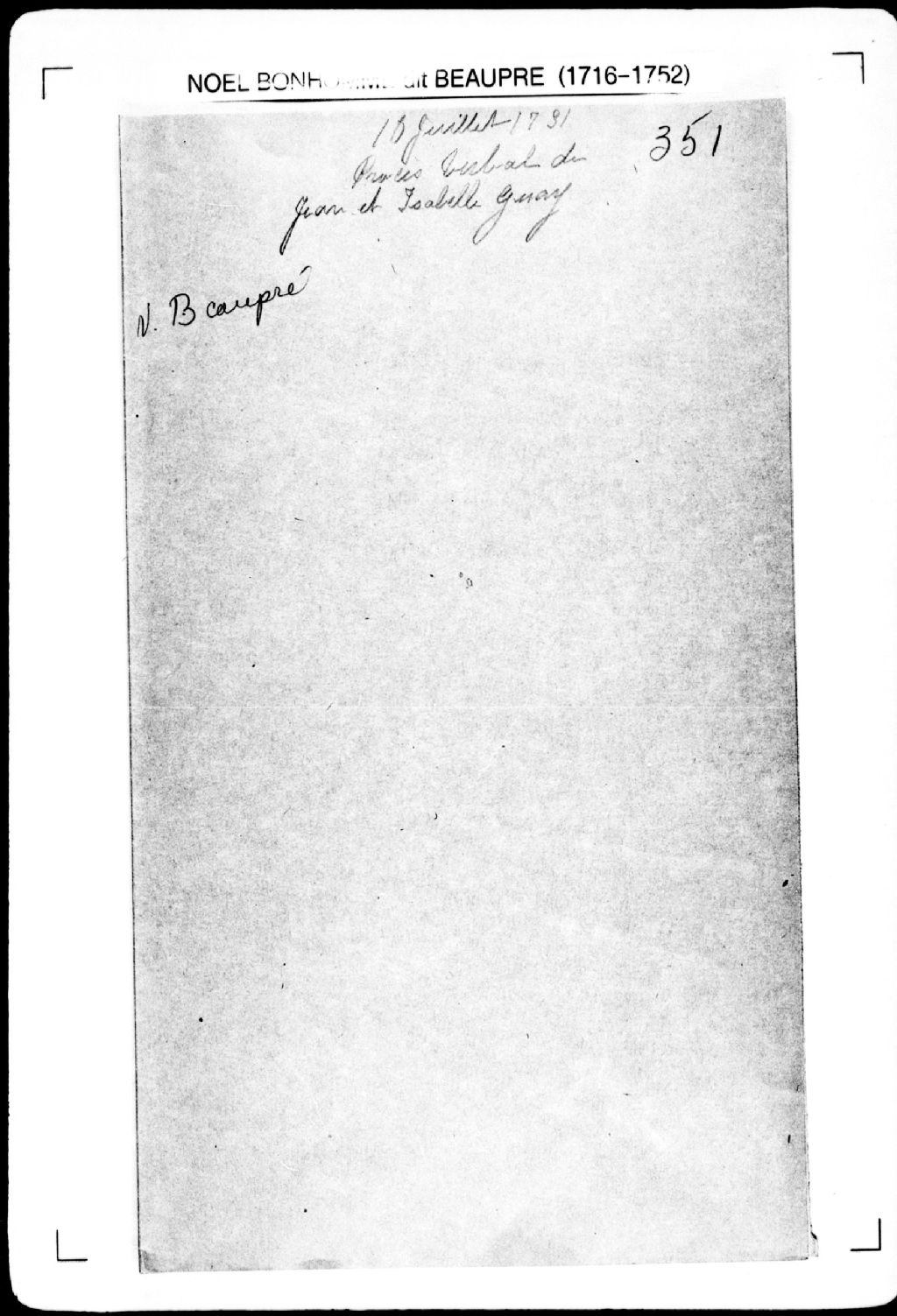 Procès-verbal de ligne et borne séparant deux terres et de vérification de procès-verbaux antérieurs en vertu d'une ordonnance de [Gilles Hocquart], intendant de la Nouvelle-France, en date du 4 août 1731, lesquelles terres étant situées à la côte de Lauzon, seigneurie de Lauzon. La présente pièce concerne directement: Jean Guay; Isabelle Guay (arpenteurs Noël Bonhomme dit Beaupré et François Lemaître dit Lamorille), 5 octobre 1731, Archives nationales à Québec, Fonds Cour supérieure. District judiciaire de Québec. Greffes d'arpenteurs, (03Q,CA301,S2,P390).