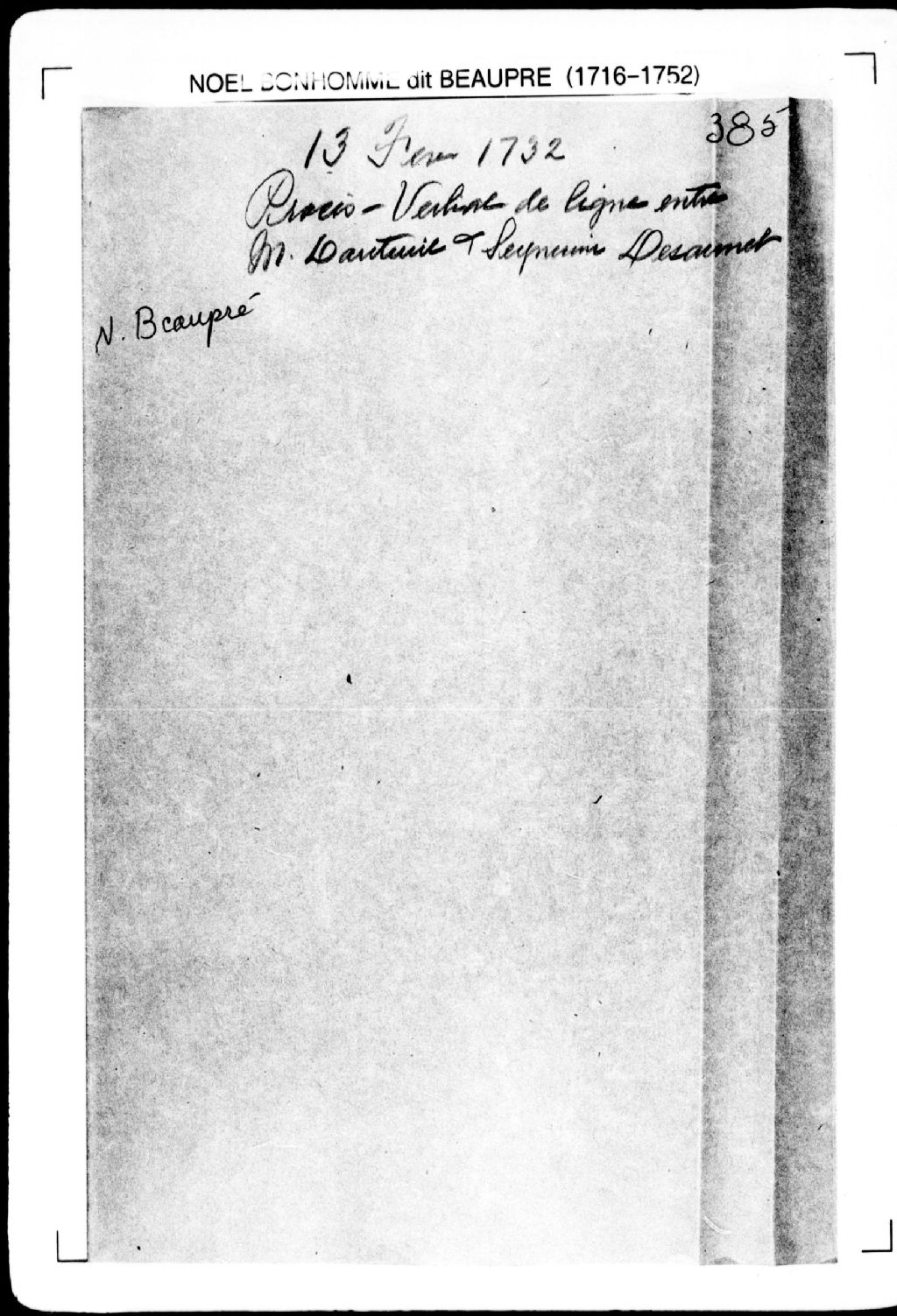 Procès-verbal de ligne et borne séparant la seigneurie de La Pocatière et la seigneurie de Saint-Roch-des-Aulnaies [seigneurie de la Grande-Anse] à la Grande-Anse. La présente pièce concerne directement: le sieur Dauteuil (d'Auteuil), seigneur de La Pocatière (arpenteur Noël Bonhomme dit Beaupré)