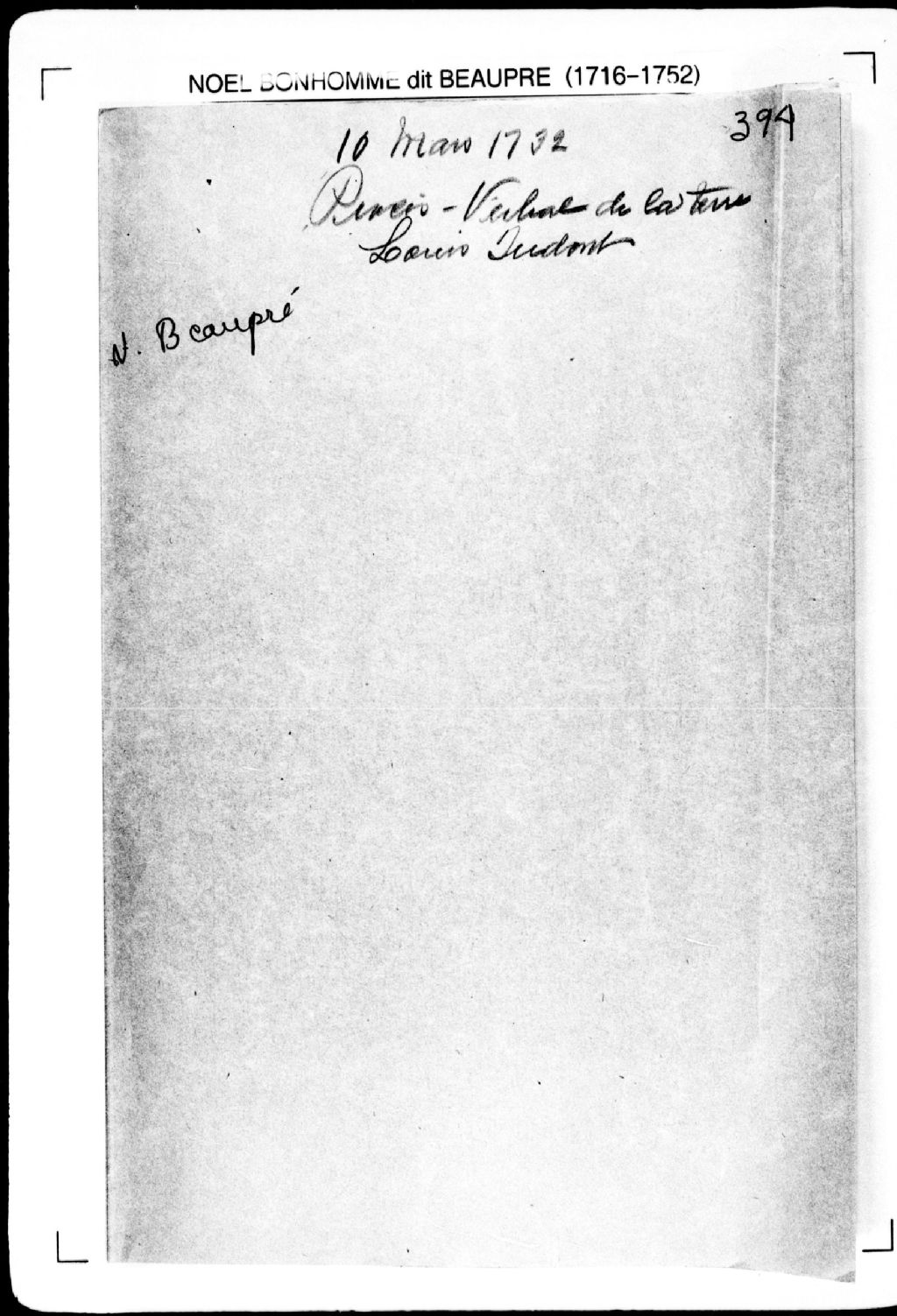 Procès-verbal de chaînage, lignes et bornes de deux terres situées à la pointe à Lacaille, [seigneurie de la Rivière-du-Sud]. La présente pièce concerne directement: Louis Judont (Judon); François Fournier (arpenteur Noël Bonhomme dit Beaupré), 10 mars 1732, Archives nationales à Québec, Fonds Cour supérieure. District judiciaire de Québec. Greffes d'arpenteurs, (03Q,CA301,S2,P436).