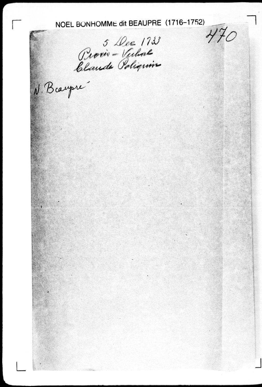 Procès-verbal de borne séparant deux terres et de cession de terrain situées dans la seigneurie de Vincennes. La présente pièce concerne directement: Claude Poliquin; Jean Sanson (Samson) (arpenteur Noël Bonhomme dit Beaupré), 5 décembre 1733, Archives nationales à Québec, Fonds Cour supérieure. District judiciaire de Québec. Greffes d'arpenteurs, (03Q,CA301,S2,P514).