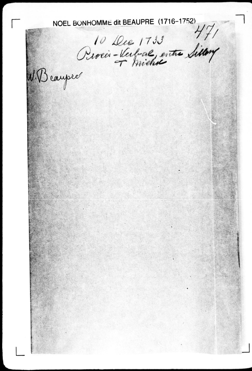 Procès-verbal de ligne et bornes séparant la seigneurie de Sillery d'avec le fief de Saint-Michel, à la pointe dite des Puiseaux, jusqu'au-delà de la route qui va de Québec au Cap-Rouge. La présente pièce concerne directement: les sieurs du Séminaire de Québec; les Révérends Pères Jésuites de la Nouvelle-France (arpenteurs Noël Bonhomme dit Beaupré et Jean Duboc), 9 décembre 1733 - 10 décembre 1733, Archives nationales à Québec, Fonds Cour supérieure. District judiciaire de Québec. Greffes d'arpenteurs, (03Q,CA301,S2,P515).