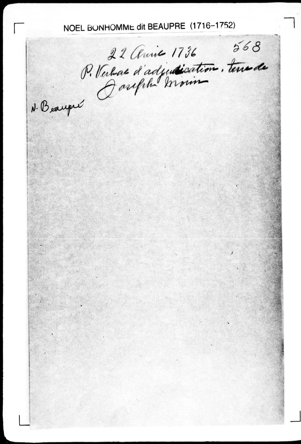 - La pièce se compose du procès-verbal de criée (vente aux enchères) et d'adjudication d'une terre pour un bail de trois années et stipulations quant au paiement des rentes seigneuriales, à l'entretien des clôtures et au bois présent sur ladite terre en vertu d'une permission donnée par le lieutenant général au siège de la Prévôté de Québec, laquelle terre étant située dans la seigneurie de Saint-Gabriel. Elle concerne directement: feu Joseph Morin, époux en premières noces de feue Marie-Anne Brideau et en secondes noces de Dorothée Girard, tutrice de leurs enfants mineurs; Noël Berthiaume, habitant de la côte Saints-Anges en la seigneurie de Maur.