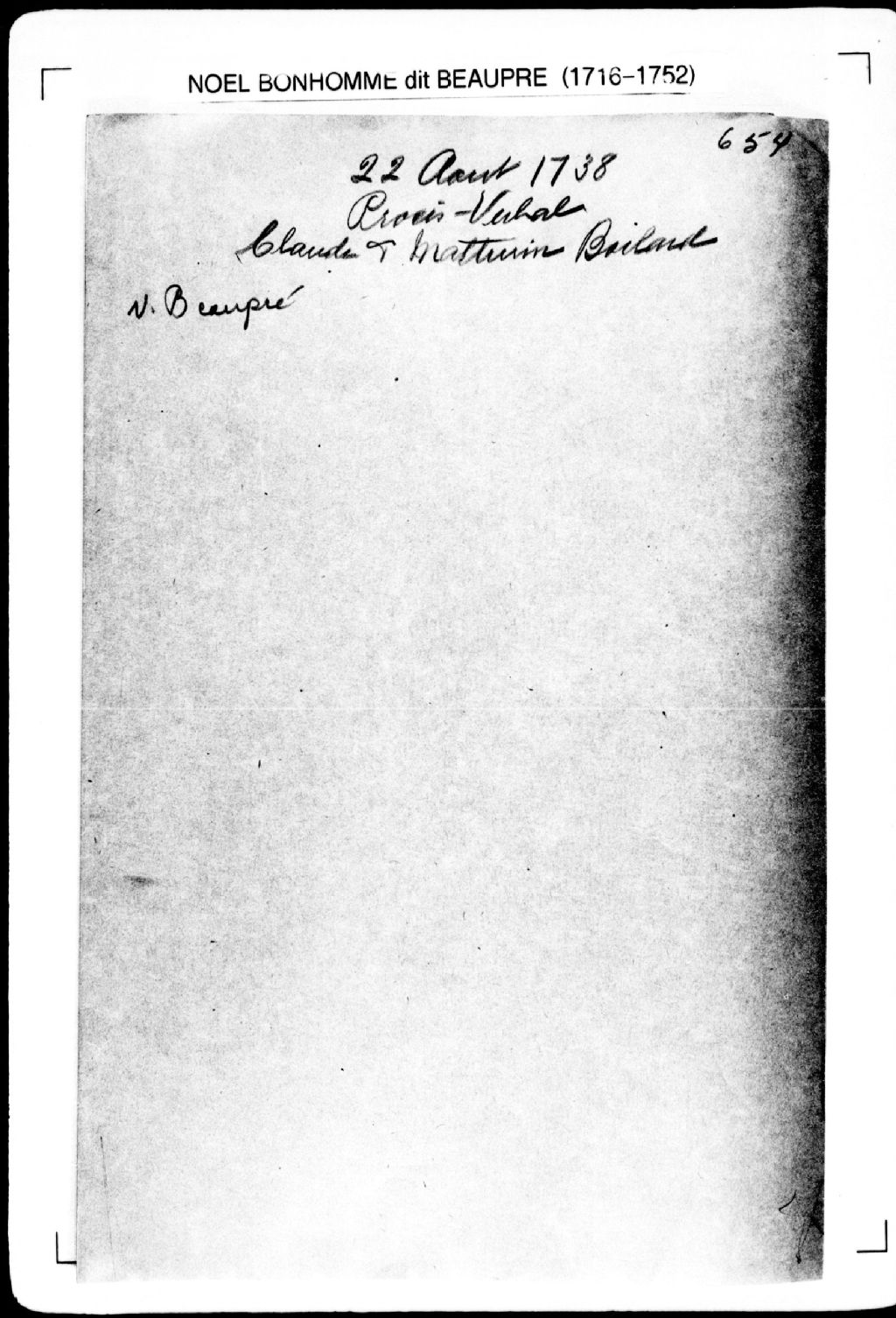 Procès-verbal de chaînage, lignes et bornes de quatre terres situées à la seconde concession de la seigneurie de Mont-à-Peine. La présente pièce concerne directement: Claude Boilard; Mathurin Boilard; Claude Girard; Joseph Turgeon (arpenteur Noël Bonhomme dit Beaupré), 22 août 1738, Archives nationales à Québec, Fonds Cour supérieure. District judiciaire de Québec. Greffes d'arpenteurs, (03Q,CA301,S2,P699).