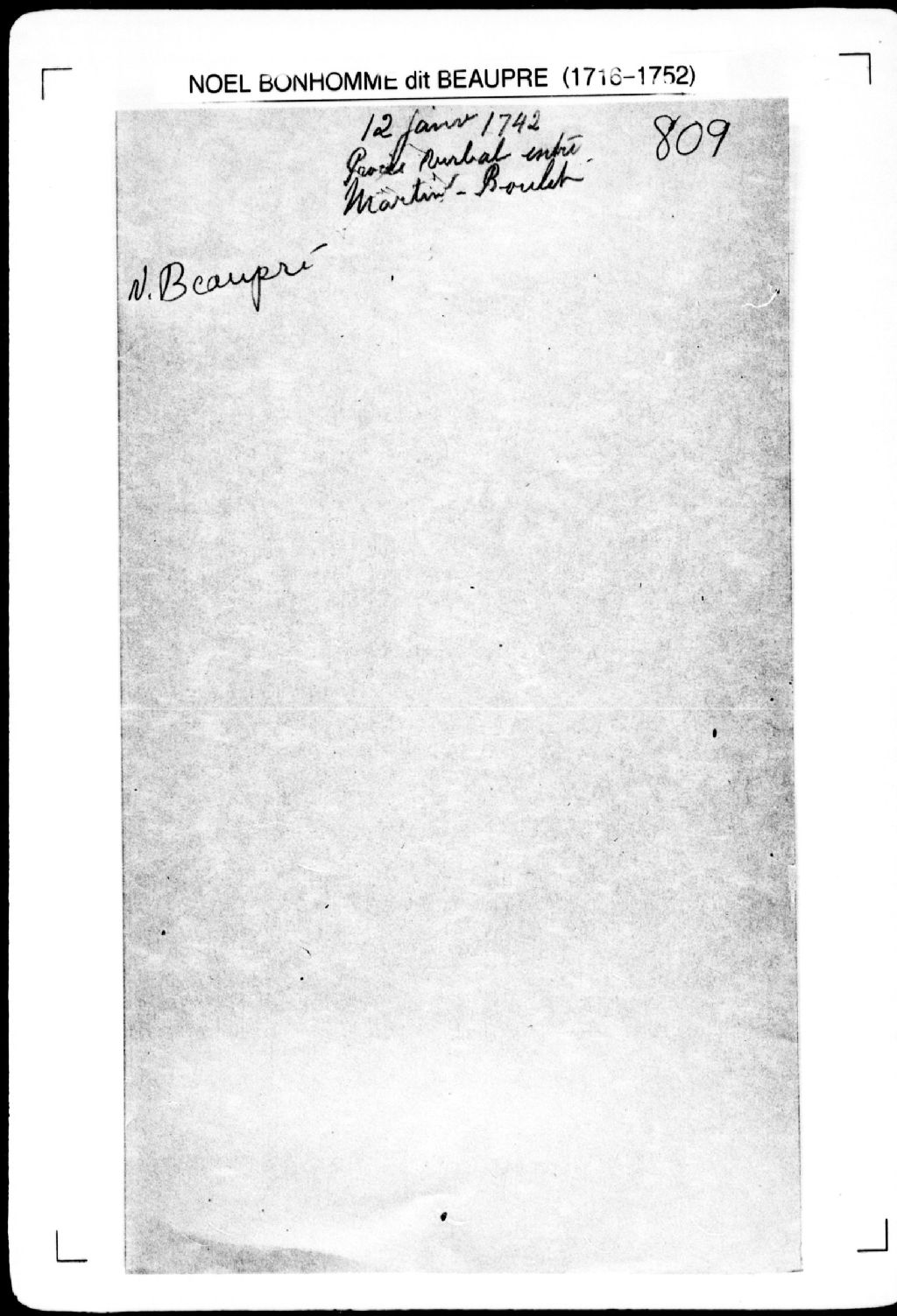 Procès-verbal de partage d'une terre et de chaînage, lignes et bornes des portions, laquelle terre étant située dans la seigneurie de la Rivière-du-Sud. La présente pièce concerne directement: Jacques Martin; Alexis Boulet (Boulay) (arpenteur Noël Bonhomme dit Beaupré), 12 janvier 1742, Archives nationales à Québec, Fonds Cour supérieure. District judiciaire de Québec. Greffes d'arpenteurs, (03Q,CA301,S2,P857).