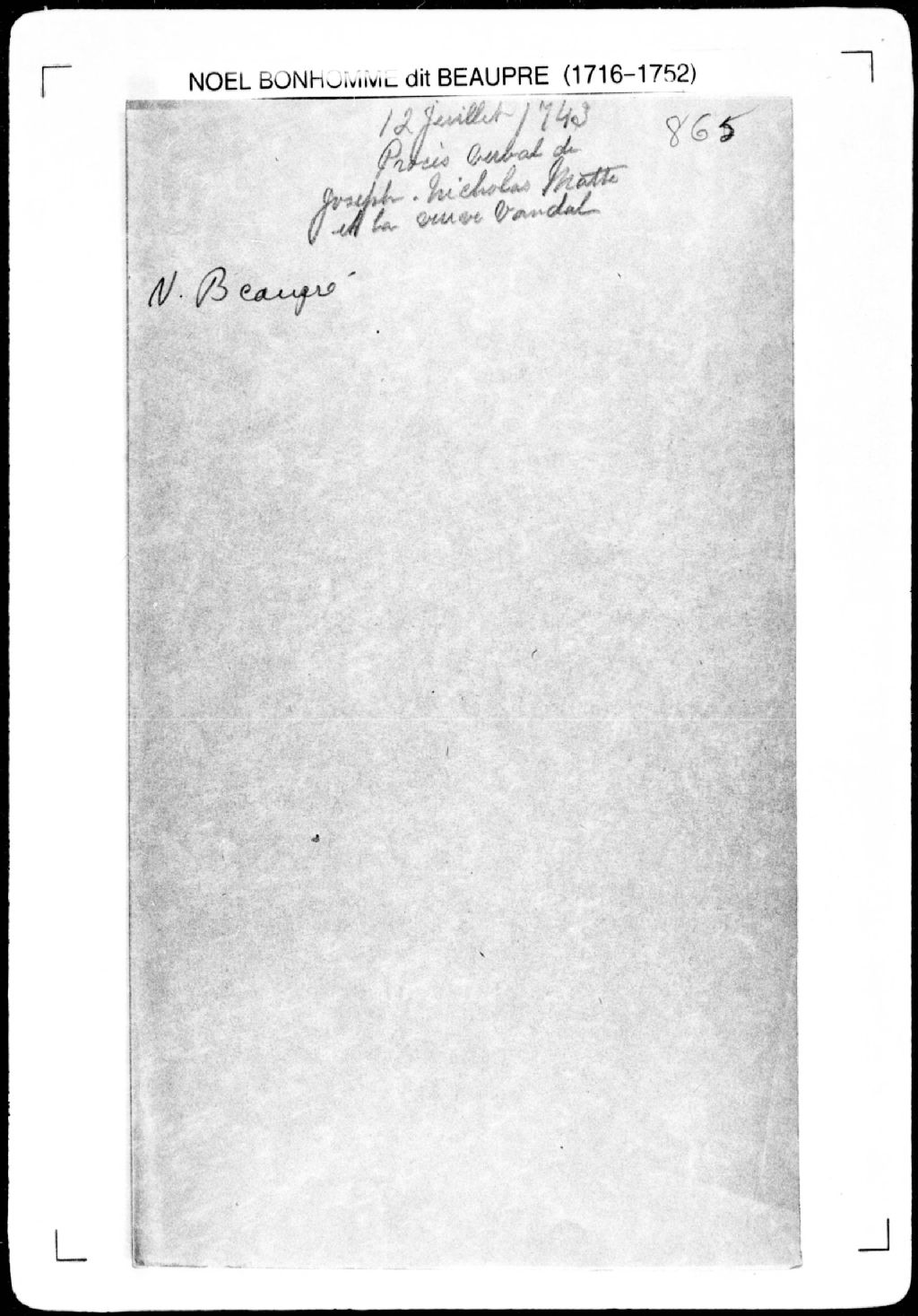 Procès-verbal de ligne séparant deux terres situées dans la seigneurie de la Pointe-aux-Trembles [seigneurie de Neuville]. La présente pièce concerne directement: Joseph Matte; Nicolas Matte; la veuve Vandal (arpenteur Noël Bonhomme dit Beaupré), 12 juillet 1743, Archives nationales à Québec, Fonds Cour supérieure. District judiciaire de Québec. Greffes d'arpenteurs, (03Q,CA301,S2,P917).