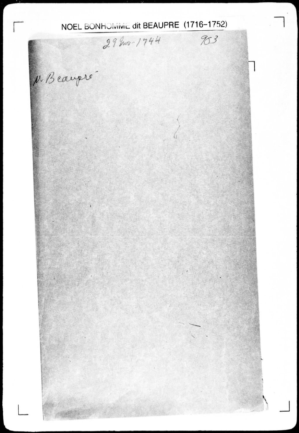 Procès-verbal de chaînage d'une terre et d'une clôture mitoyenne, laquelle terre étant située dans la seigneurie de Mont-à-Peine. La présente pièce concerne directement: Jacques Lisse (Lis, Lys) (arpenteur Noël Bonhomme dit Beaupré), 29 novembre 1744, Archives nationales à Québec, Fonds Cour supérieure. District judiciaire de Québec. Greffes d'arpenteurs, (03Q,CA301,S2,P954).