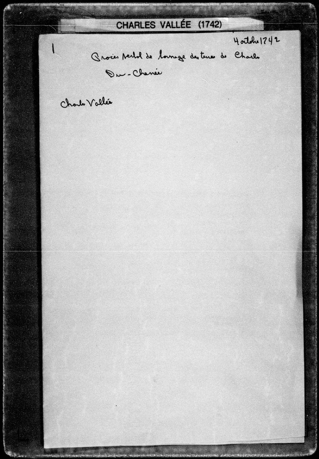 Procès-verbal de partage d'une terre et de chaînage, ligne et bornes des portions, laquelle terre étant située au terrain appelé le Grand-Parc, dans la [seigneurie de Beauport]. La présente pièce concerne directement: Jacques Parent, frère de François Parent; François Parent, frère de Jacques Parent (arpenteur Charles Vallée), 4 octobre 1742, Archives nationales à Québec, Fonds Cour supérieure. District judiciaire de Québec. Greffes d'arpenteurs, (03Q,CA301,S37,P1).