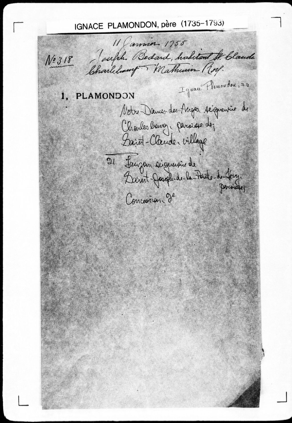 - Procès-verbal de ligne séparant deux terres depuis la route qui sépare le village Saint-Claude du village Saint-Pierre, lesquelles terres étant situées audit village Saint-Claude, dans la paroisse de Charlesbourg, seigneurie de Notre-Dame-des-Anges.