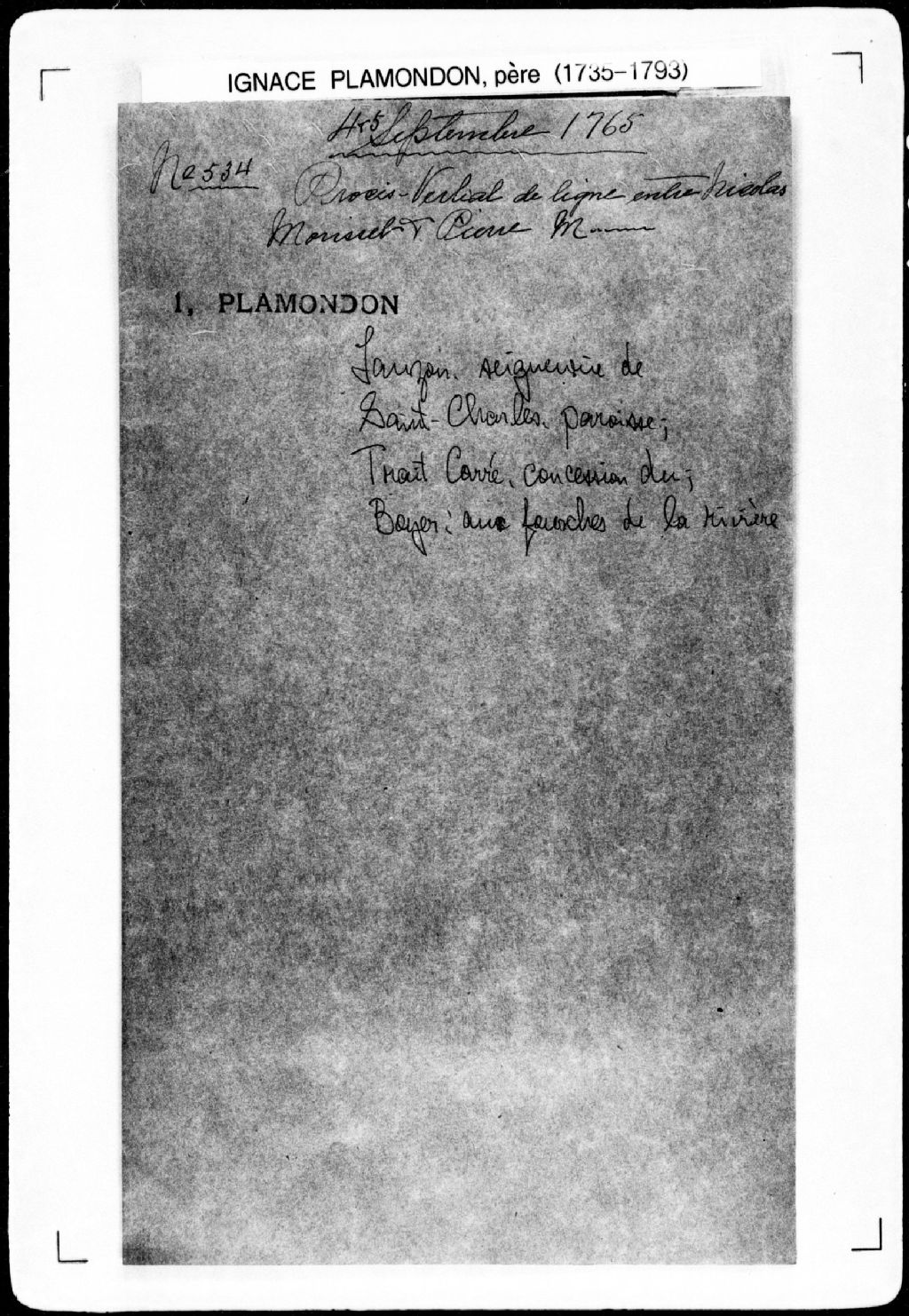 - Procès-verbal de ligne séparant deux terres, en vertu d'un ordre rendu en la Cour et Conseil militaire de Québec par Jean (John) Marteilhe et Thomas Aylwin, écuyers, juges de paix de Sa Majesté, en date du 23 août 1765, lesquelles terres étant situées aux fourches de la rivière Boyer, au sud-est de ladite rivière Boyer, dans la paroisse de Saint-Charles, seigneurie de Lauzon.