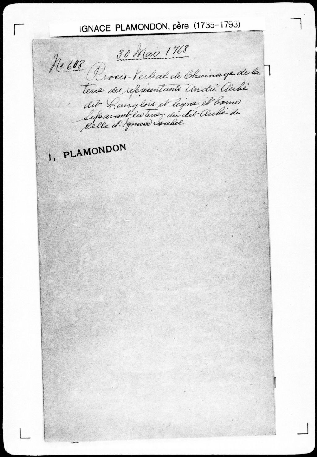 - La pièce se compose du procès-verbal de ligne et borne séparant deux terres et d'accord entre les parties quant aux fossés et aux clôtures, en vertu d'un ordre de Samuel Holland, ingénieur et arpenteur général de la province de Québec, lesquelles terres étant situées à la seconde concession, dans la paroisse de Saint-Vallier, seigneurie de Saint-Vallier. Elle concerne directement: André Aubée (fils) (Aubé); Ignace Issabel (Isabel).L'arpenteur est Ignace Plamondon père; Joseph Dion, arbitre.La présente pièce concerne indirectement un propriétaire voisin: les représentants de feu André Aubé dit Langlais (Langlois).