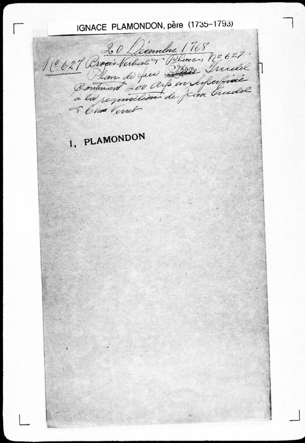 - La pièce se compose du procès-verbal et plan figuratif de chaînage, de localisation et de partage d'abouts de terre (portions de terre résiduelles entre deux concessions), lesquels abouts de terre étant attenants à la ligne de séparation entre la seigneurie de Saint-Ignace et la seigneurie de Saint-Joseph et bornés par les terres de la côte Saint-François-Xavier et par les rivières Jaune et Saint-Charles, dans ladite seigneurie de Saint-Ignace. Elle concerne directement: Jean Trudel; Charles Verette (Verret, Verrette), époux de Françoise Massé, veuve de feu Pierre Trudel; les enfants mineurs de feu Pierre Trudel, époux de Françoise Massé. Feu Jean Trudel, de son vivant habitant de la paroisse de Charlesbourg, est l'ancien propriétaire des abouts de terre dont l'arpentage fait l'objet du présent procès-verbal. Sont indirectement concernés les propriétaires voisins: Joseph Martel; le nommé Paquet; le domaine des Dames Religieuses de l'Hôtel-Dieu de Québec.Le document comporte un procès-verbal et un plan des lots situés dans les 5e et 6e concessions de la seigneurie de Saint-Ignace. Y figurent une partie de cette seigneurie, les concessions Saint-Romain, Saint-Xavier, Saint-Charles et sud-est Rivière Jaune, une partie des rivières Saint-Charles et Jaune, le domaine, la dimension des lots ainsi que les noms Charles Verret et Pierre Trudel.