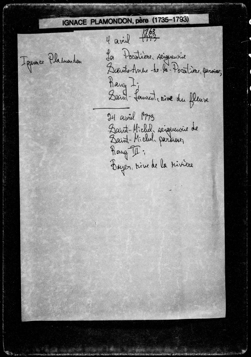 - Procès-verbal de chaînage, ligne et bornes de la profondeur de trois terres étant situées à la première concession sur le fleuve Saint-Laurent et à la seconde concession, dans la paroisse de Sainte-Anne, seigneurie de La Pocatière.