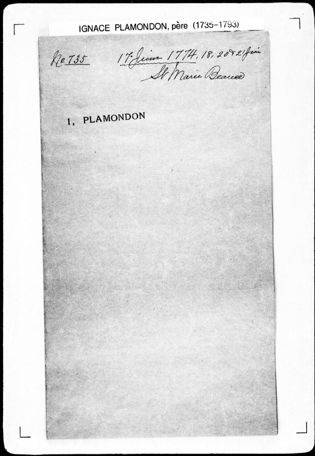 Procès-verbal de chaînage de la profondeur de la seigneurie de Sainte-Marie à la Nouvelle-Beauce depuis la ligne de la seigneurie Jolliet jusqu'à la seigneurie de Saint-Joseph-de-Beauce., 18 juin 1774, Archives nationales à Québec, Fonds Cour supérieure. District judiciaire de Québec. Greffes d'arpenteurs, (03Q,CA301,S43,P735-2).
