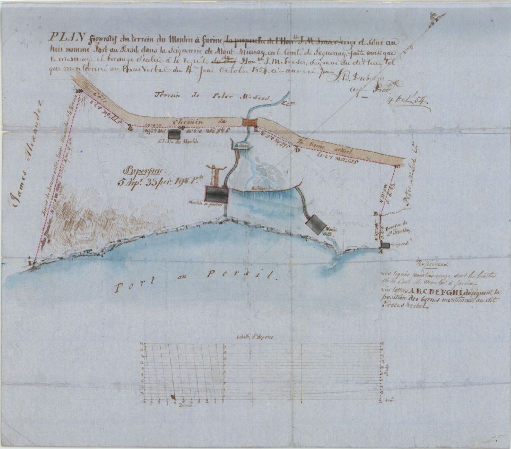 Plan figuratif du terrain du moulin à farine érigé et situé au lieu nommé Port au Persil dans la seigneurie Mont Murray, comté de Saguenay