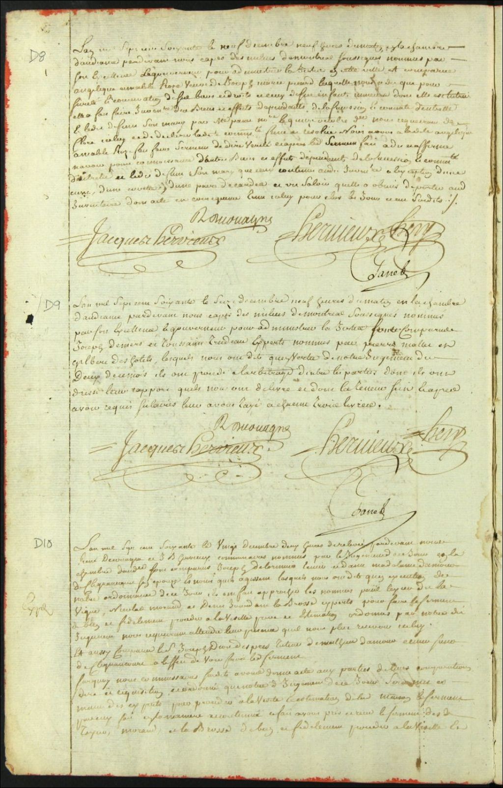 Assermentation des experts pour la visite et l'estimation de la maison dépendant de la succession des défunts [Louis Mathieu Damour Declignancourt et Marie Madeleine Guyon Després Dion], 20 décembre 1760, Archives nationales à Montréal, Fonds Cour supérieure. District judiciaire de Montréal. Procédures en matières non contentieuses, (06M,CP601,S4,SS1,D10).