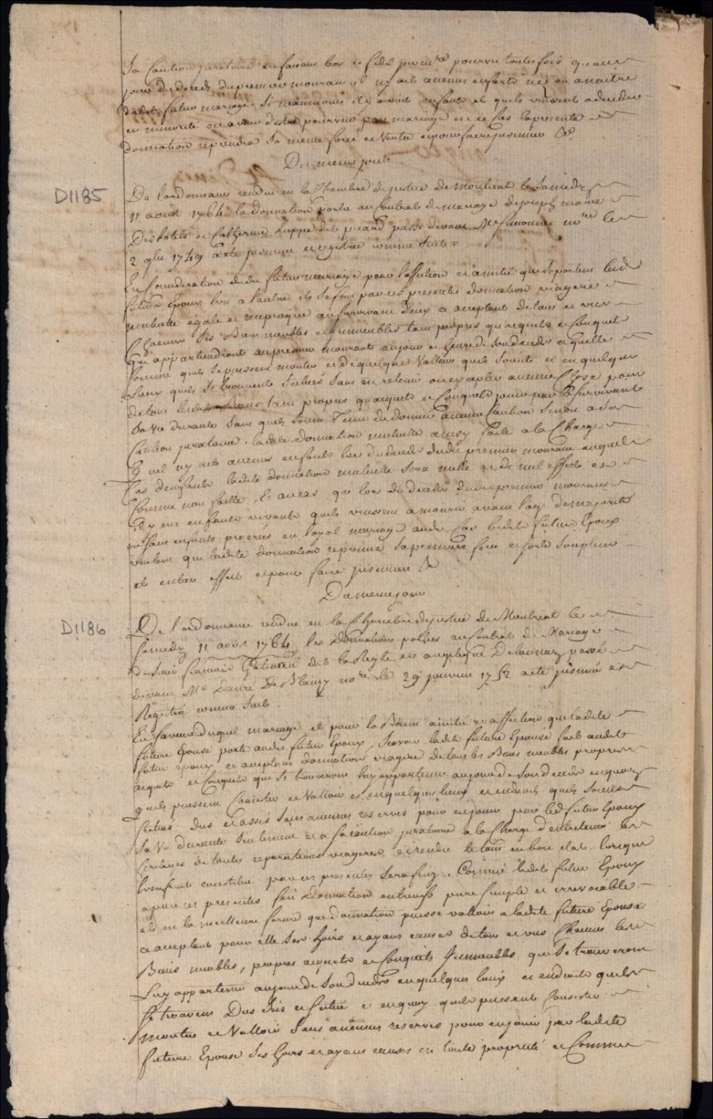 Insinuation de la donation portée au contrat de mariage entre Joseph Marie Deshôtels [Joseph Marie Desautels] et Catherine Huppé Picard