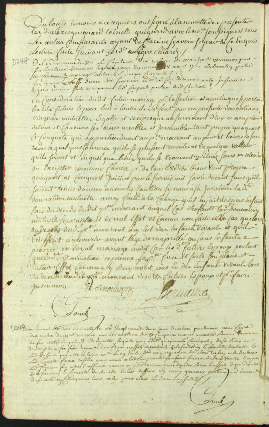 Clôture d'inventaire des biens de la succession et de la communauté de feu Louis Mathurin Paulin Dabonville et Marie Amable Baron, 20 août 1761, Archives nationales à Montréal, Fonds Cour supérieure. District judiciaire de Montréal. Procédures en matières non contentieuses, (06M,CP601,S4,SS1,D248).