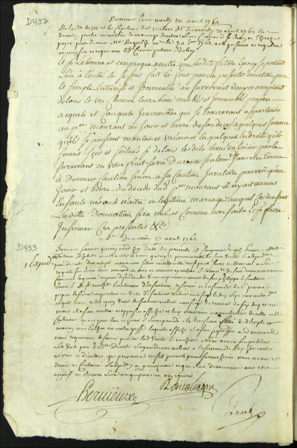 Insinuation de la donation portée au contrat de mariage entre Louis Crevier Saint-Jean et Thérèse Payet