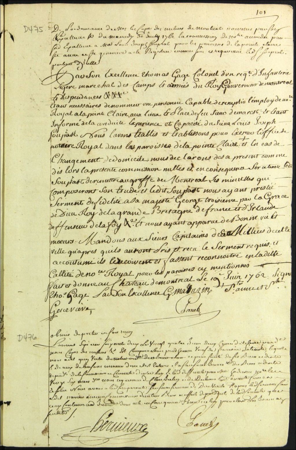 Insinuation de la commission de notaire royal accordée à Louis Joseph Soupras dans la paroisse de Pointe-Claire