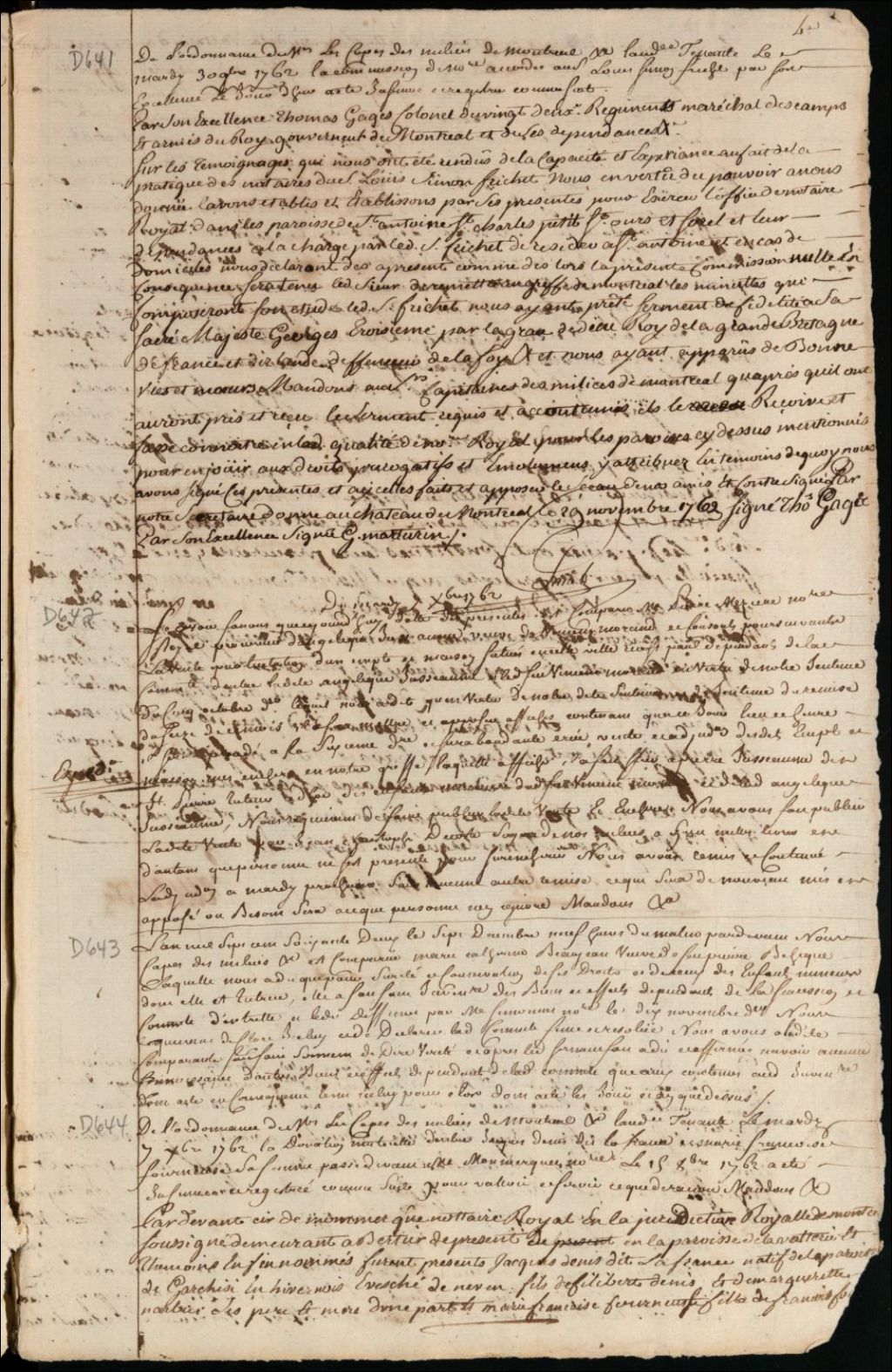 Insinuation de la commission de notaire royal accordée à Louis Simon Frichet dans les paroisses de Saint-Antoine, Saint-Charles-Petit, Saint-Ours, Sorel et leurs dépendances