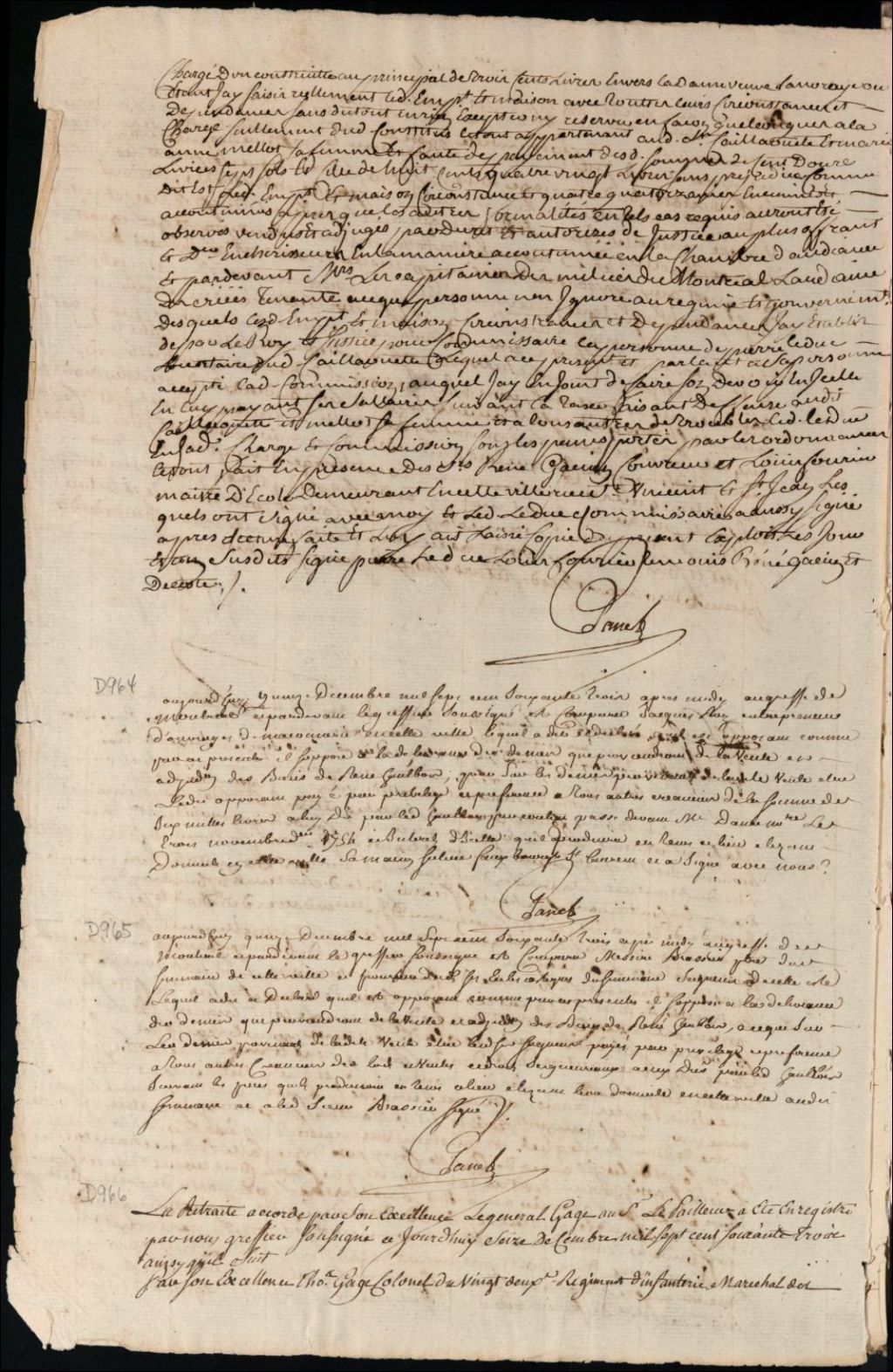 Vente par licitation de maisons, tannerie et emplacements situés au faubourg Saint-Laurent saisis réellement sur René Hautbois [René Aubois], 15 décembre 1763, Archives nationales à Montréal, Fonds Cour supérieure. District judiciaire de Montréal. Procédures en matières non contentieuses, (06M,CP601,S4,SS1,D965).